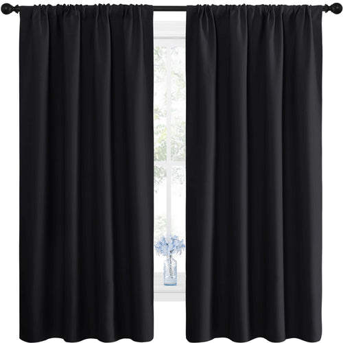 NICETOWN Halloween Black Blackout Curtain Blinds - Solid Thermal Insulated Window Treatment Blackout Drapes/Draperies for Bedroom (2 Panels, 42 inches Wide by 63 inches Long, Black)