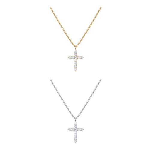PAVOI 14K Gold Plated Cross Faith Pendant Necklaces for Women | White & Yellow Pack Cubic Zirconia Cross Pendants