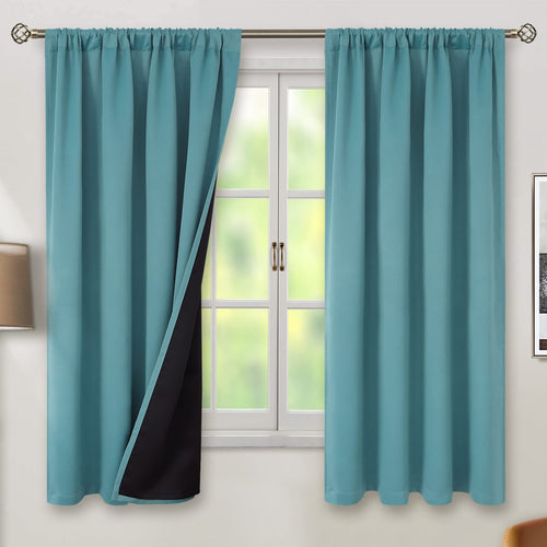 BGment Thermal Insulated 100% Blackout Curtains for Bedroom with Black Liner, Double Layer Full Room Darkening Noise Reducing Rod Pocket Curtain (52 x 63 Inch, Spa Blue, 2 Panels)
