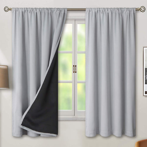 BGment Thermal Insulated 100% Blackout Curtains for Bedroom with Black Liner, Double Layer Full Room Darkening Noise Reducing Rod Pocket Curtain (52 x 63 Inch, Light Grey, 2 Panels)