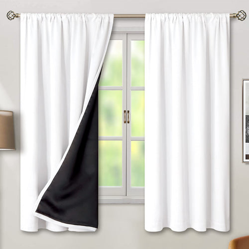 BGment White Blackout Curtains for Bedroom 63 Inch Long - Thermal Insulated Black Out Curtains Room Darkening Soundproof Rod Pocket Window Curtains for Living Room, Each Drape Panel 52 Inch Wide