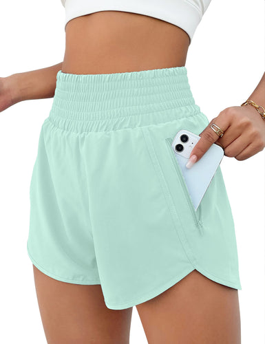 BMJL Women's Athletic Shorts High Waisted Running Short Pocket 2.5" Sporty Shorts Gym Elastic Workout Shorts(S,Light Green)