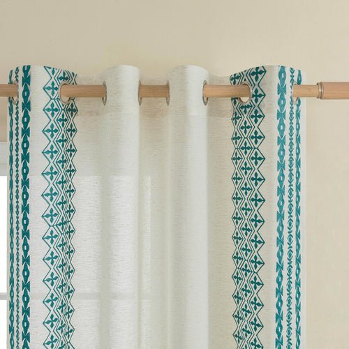 Boho Curtains 63 Inch Length 2 Panels Set Grommet Natural Linen Semi Sheer Curtains for Living Room Bedroom Privacy Vintage Bohemian Drapes Rustic Art Farmhouse Decor, 52x63 Inches Long, Teal Blue