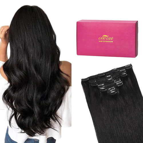 GOO GOO Clip in Hair Extensions Human Hair, 14inch 120g 7Pcs, #1B Natural black, Hair extensions for women, Human Hair Extensions Clip in