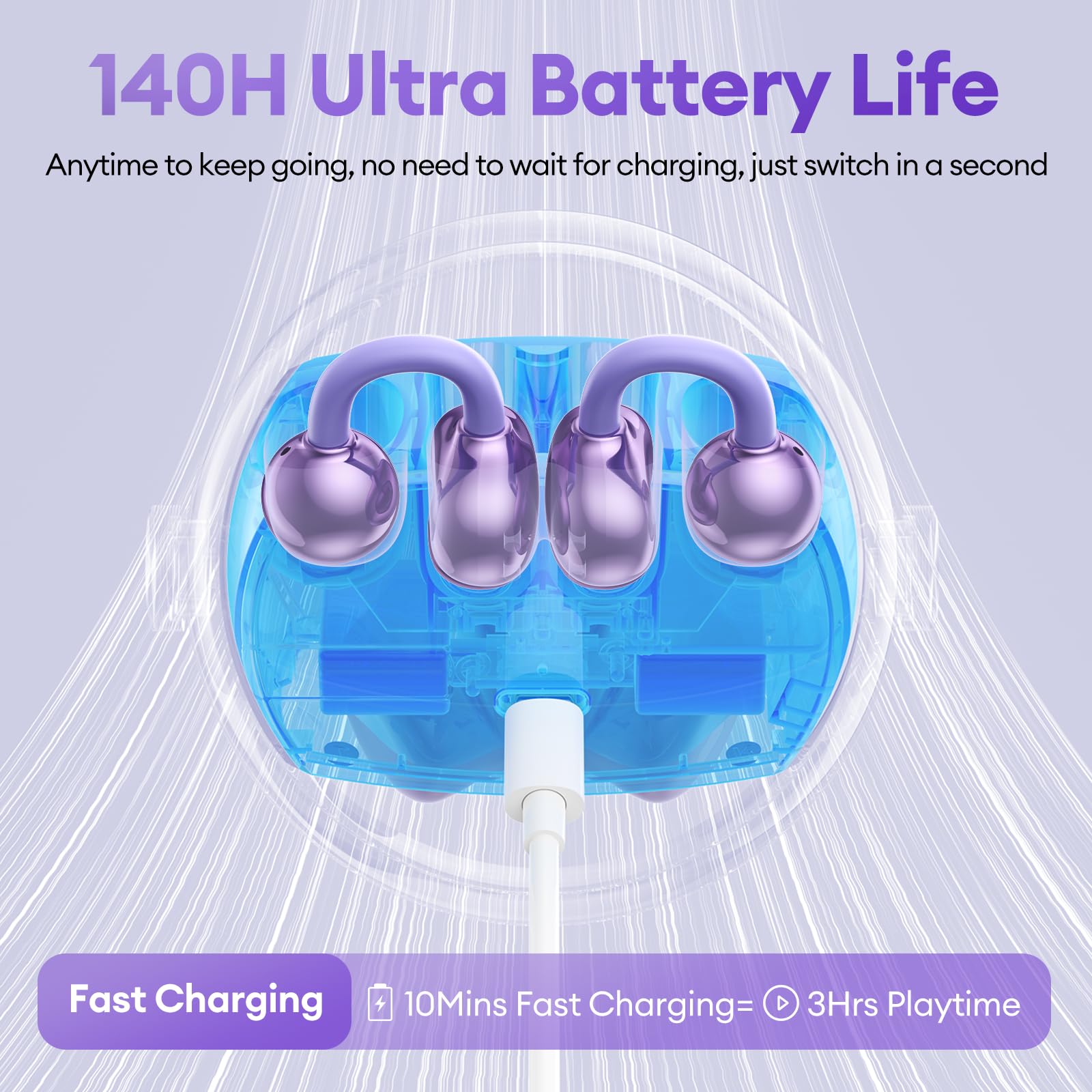 - 【140H Ultra Playtime&IPX5 Water Resistant】Built with nano-coating technology & rigid seams, this 2 in 1 clip on ear buds offer IPX5 water resistance, designed for sports and fitness enthusiasts, built to withstand heavy sweat and rain without missing a beat. Two pairs of wireless ear buds paired with a large capacity portable 200mAh charging case can achieve 140-hour uninterrupted use, replace your bluetooth headphones anytime to keep going, no need to wait for charging,just switch in a second.