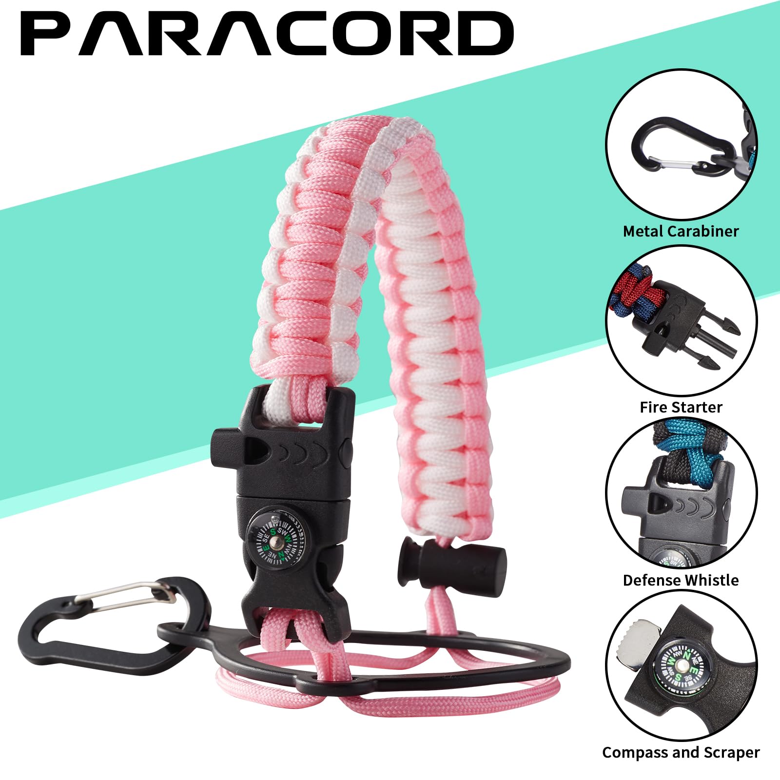 - UNIQUE PARACORD HANDLE: Bright color paracord matches the flask water bottle to give you a youthful vibe while adding a personal style. With a compass, safety loop, metal carabiner, flint, igniter and whistle to become your survival tool, making the 32 oz stainless steel water bottle with paracord an ideal survival kit for expeditions in the wild