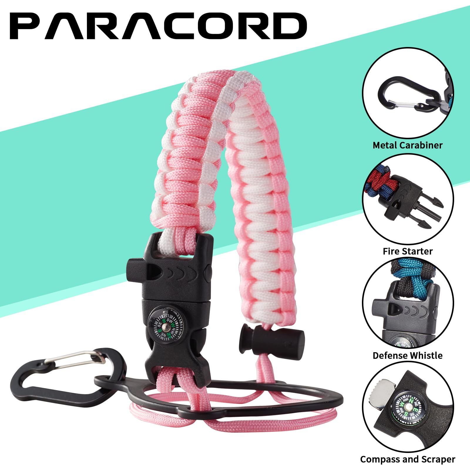 - UNIQUE PARACORD—Perfect Accessories: bright color paracord matches the flask water bottle to give you a youthful vibe while adding a personal style. It comes with a compass, safety loop, metal carabiner, flint, igniter, and whistle to become your survival tool for your wild adventures
