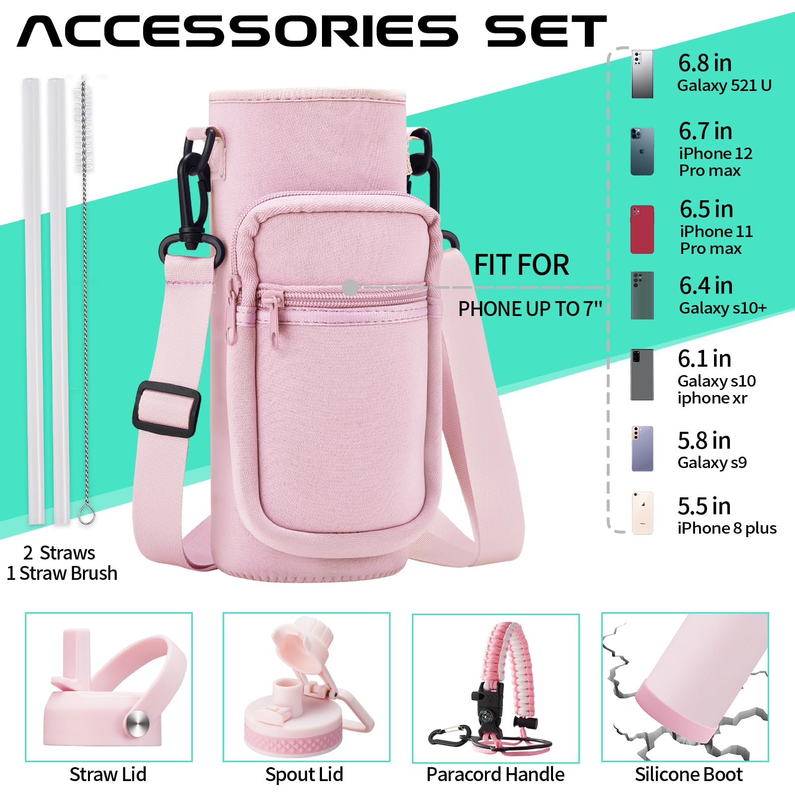 - COMBO—Super Deal: Buy 40oz stainless steel water bottles and get 9 accessories (2 x lids, 1 x survival paracord, 1 x carrying pouch, 1 x shoulder strap, 1 x protective cup mat, 2 x straws, 1 x straw brush). WITH A LIFETIME GUARANTEE, these thermal water bottles are the perfect gift for use at home, work, school, road trips, hiking, sporting events, or just hanging out