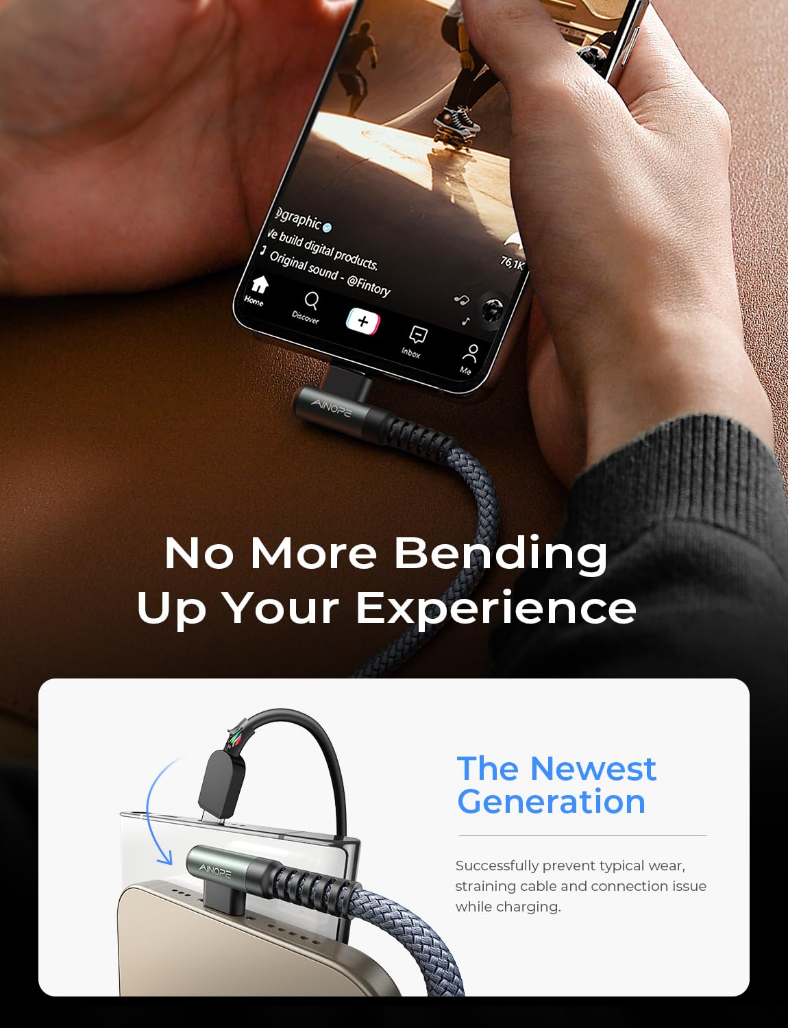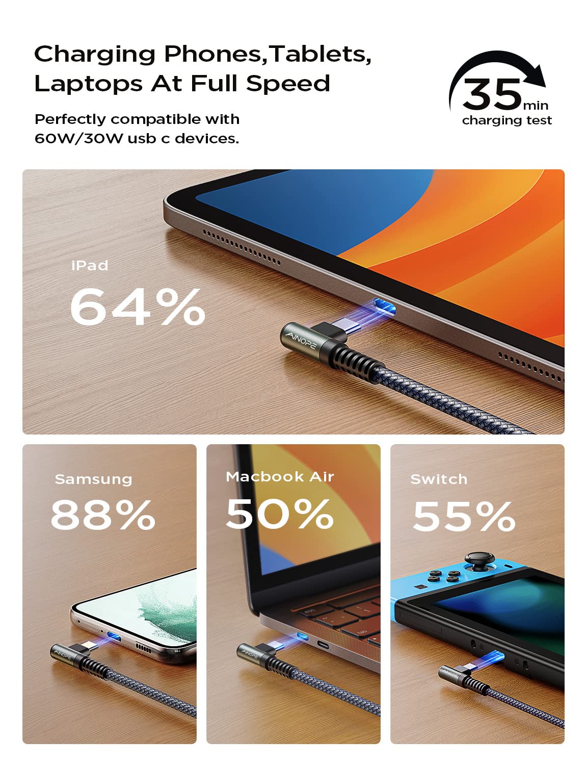 AINOPE Right Angle USB C to USB C Cable 17 3.3FT 60W 2 Pack USBC to USBC for iPhone 16 Pro Max Car Charger Cord Fast Charging Compatible with iPhone 16 15 Samsung A17 iPad Pro Android Phone Accesories
