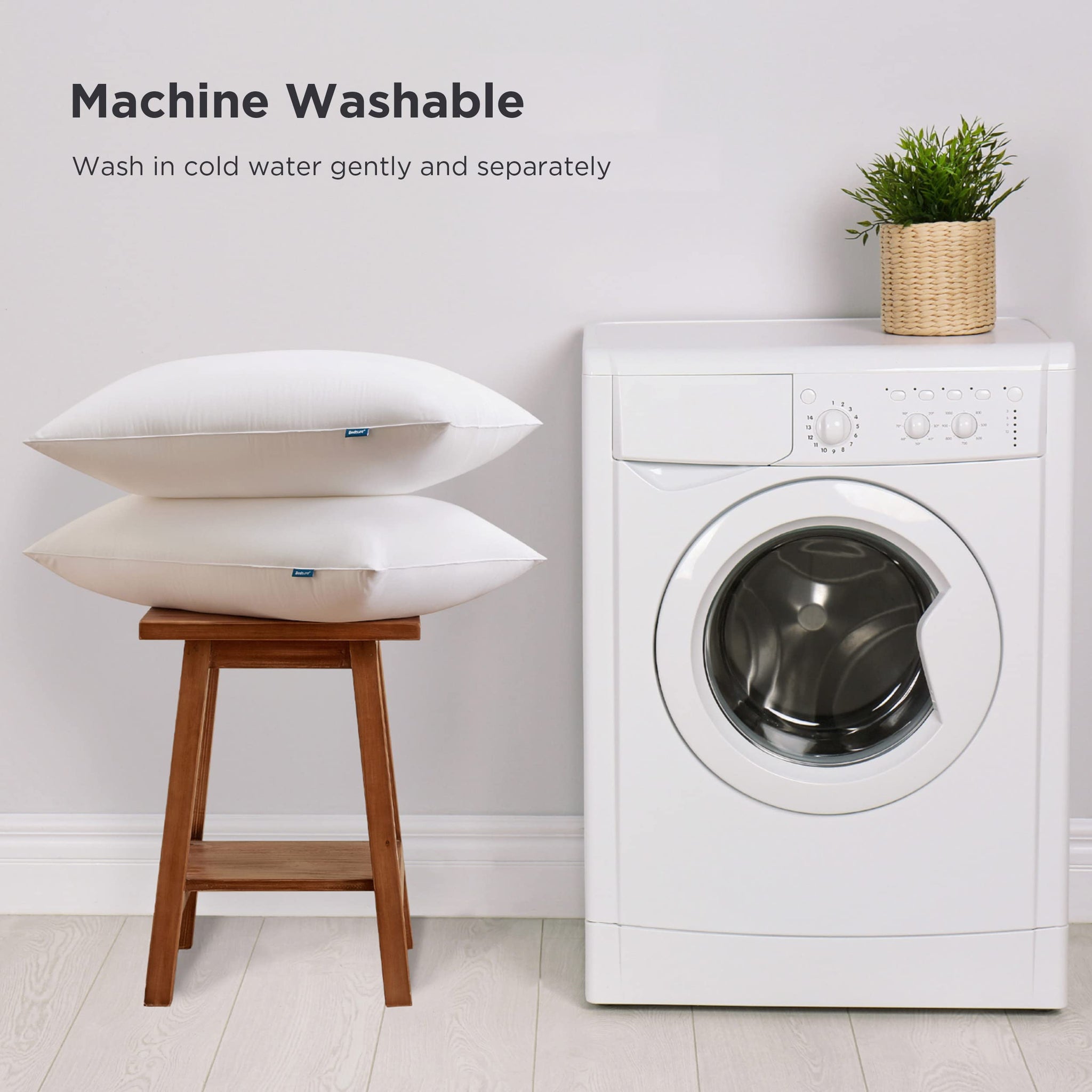 • Warm Tips: Upon unboxing, grab the sides of these pillows and gently shake and pat the pillows to puff up. Please allow up to 48 hours for the pillows to regain their max volume. These pillows are machine washable on cold water, and tumble dry low for a like-new restoration