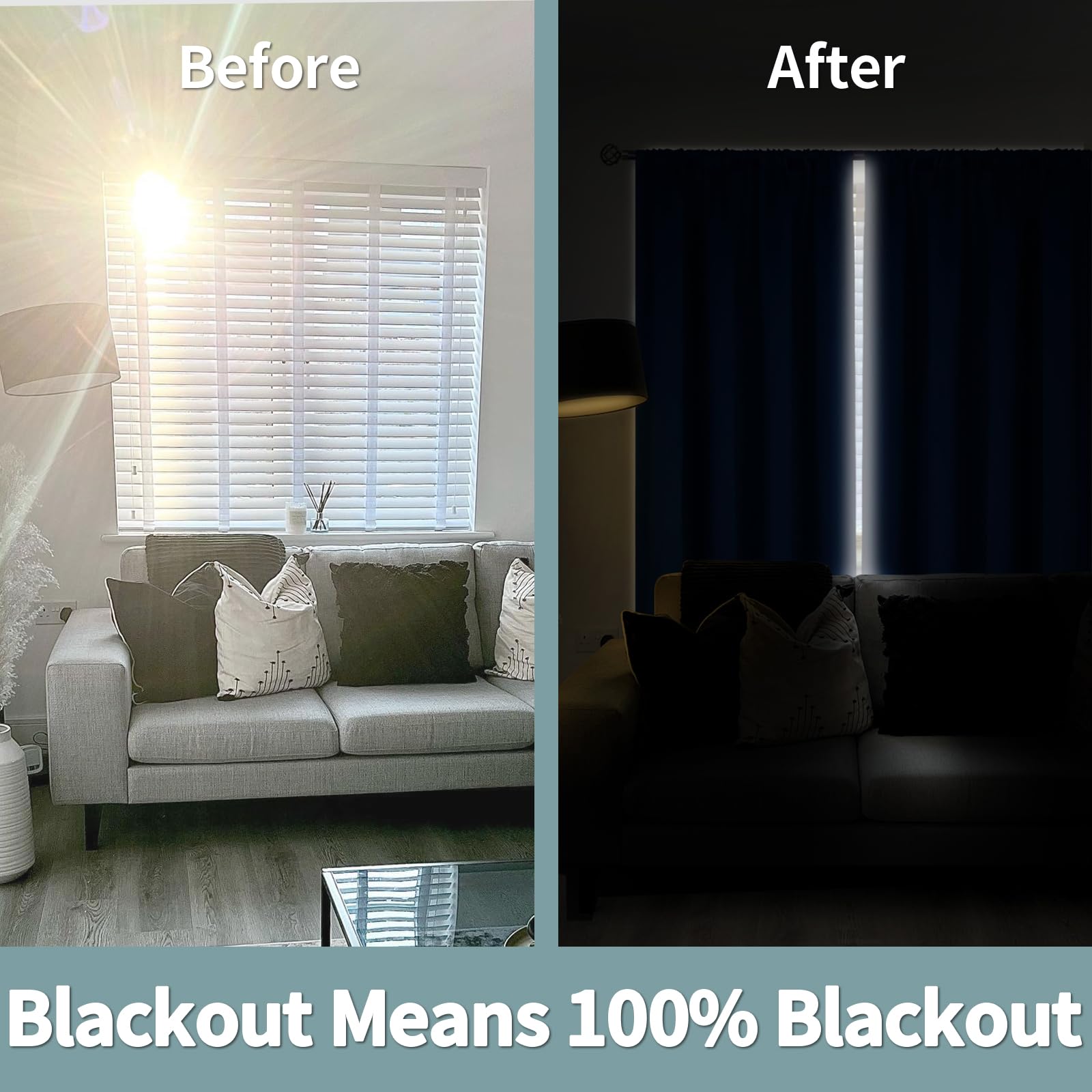 • 100% Blackout Curtains:These high-quality curtains are combined with black backing to make completely black-out curtains that help ward off streetlights and light, creating dark bedrooms and living rooms environment , while also providing better privacy.