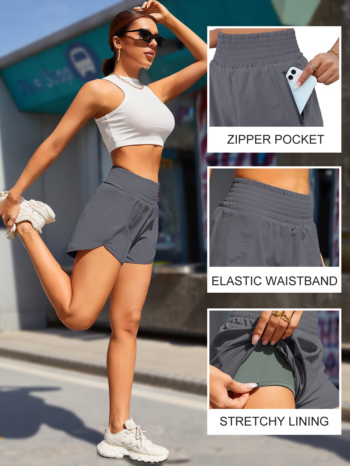 - Double Layer Design: The high waisted shorts for women with Outer layer side split design, which offer breathability and wider range of motion.it also design with Inner layer, which provide elastic support and protective coverage.