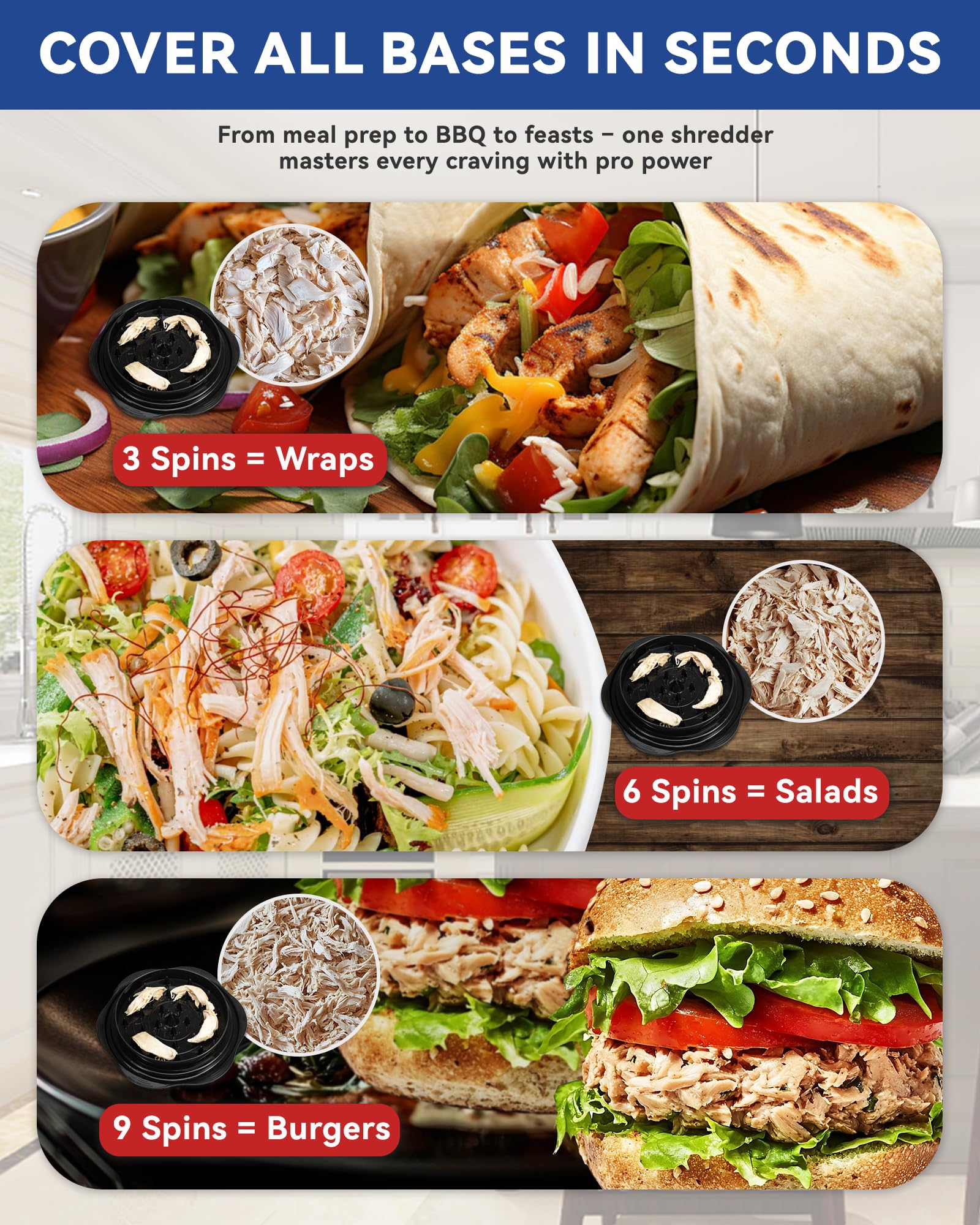 - 【Great Kitchen Helper】Perfect for fitness enthusiasts, barbecue lovers or those who love to cook, this meat grinder effectively shreds chicken, pork, beef and other vegetables, widely used for tacos, quesadillas and BBQ pork, tuna salad, buffalo chicken salad, casserole dishes. In addition, pet lovers can use this meat slicer to shred chicken for pet food. It makes an ideal gift for family and friends on any special day.