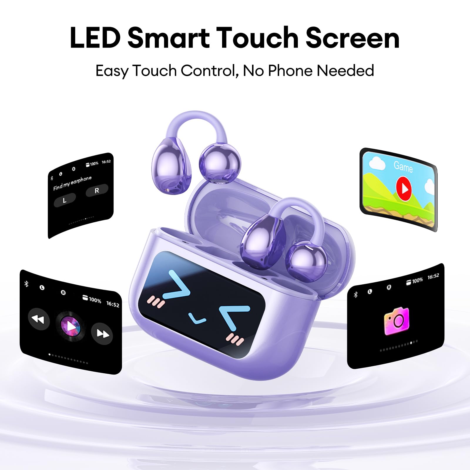 - Command Your World with the 1.3" Touchscreen Case: Skip tracks, snap Instagram-worthy selfies (Android/iOS), and crush mini-games—all from your ear clip earbuds’ case! Ditch your phone during workouts, travels, or boring meetings—ultimate control stays in your pocket
