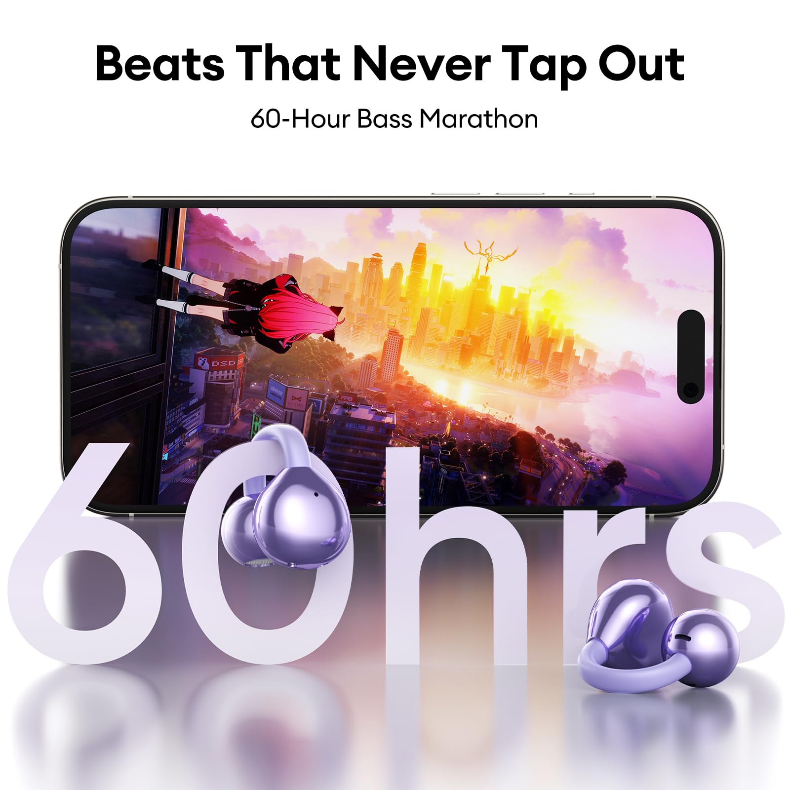- Bluetooth 5.4 & 50H Marathon Playtime: Enjoy ultra-stable connectivity and 40% faster pairing with the latest Bluetooth 5.4 chip. The 500mAh charging case provides 50 hours total playtime for the open ear earbuds, Never miss a beat during long commutes or workouts