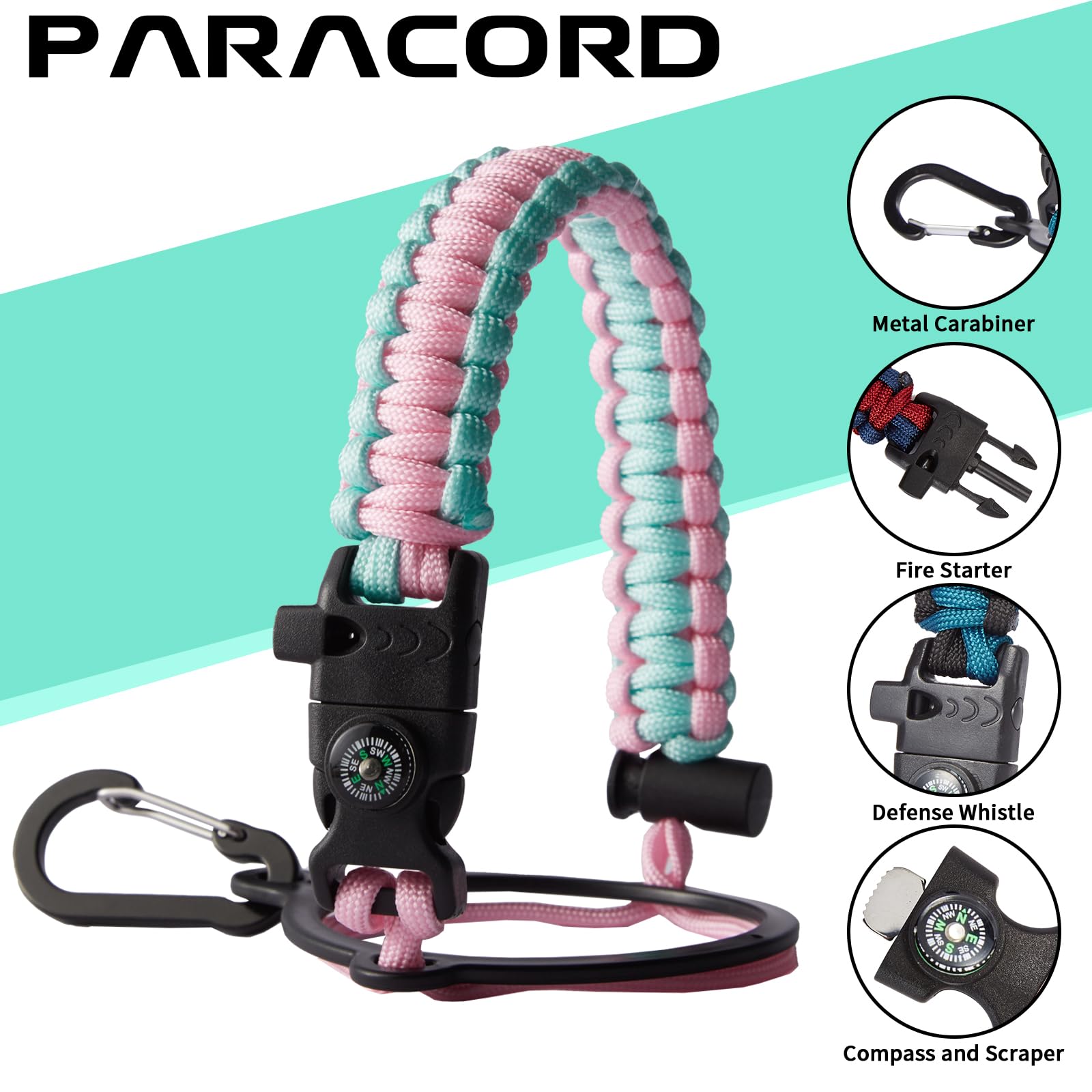 • UNIQUE PARACORD—Perfect Accessories: bright color paracord matches the flask water bottle to give you a youthful vibe while adding a personal style. It comes with a compass, safety loop, metal carabiner, flint, igniter, and whistle to become your survival tool for your wild adventures