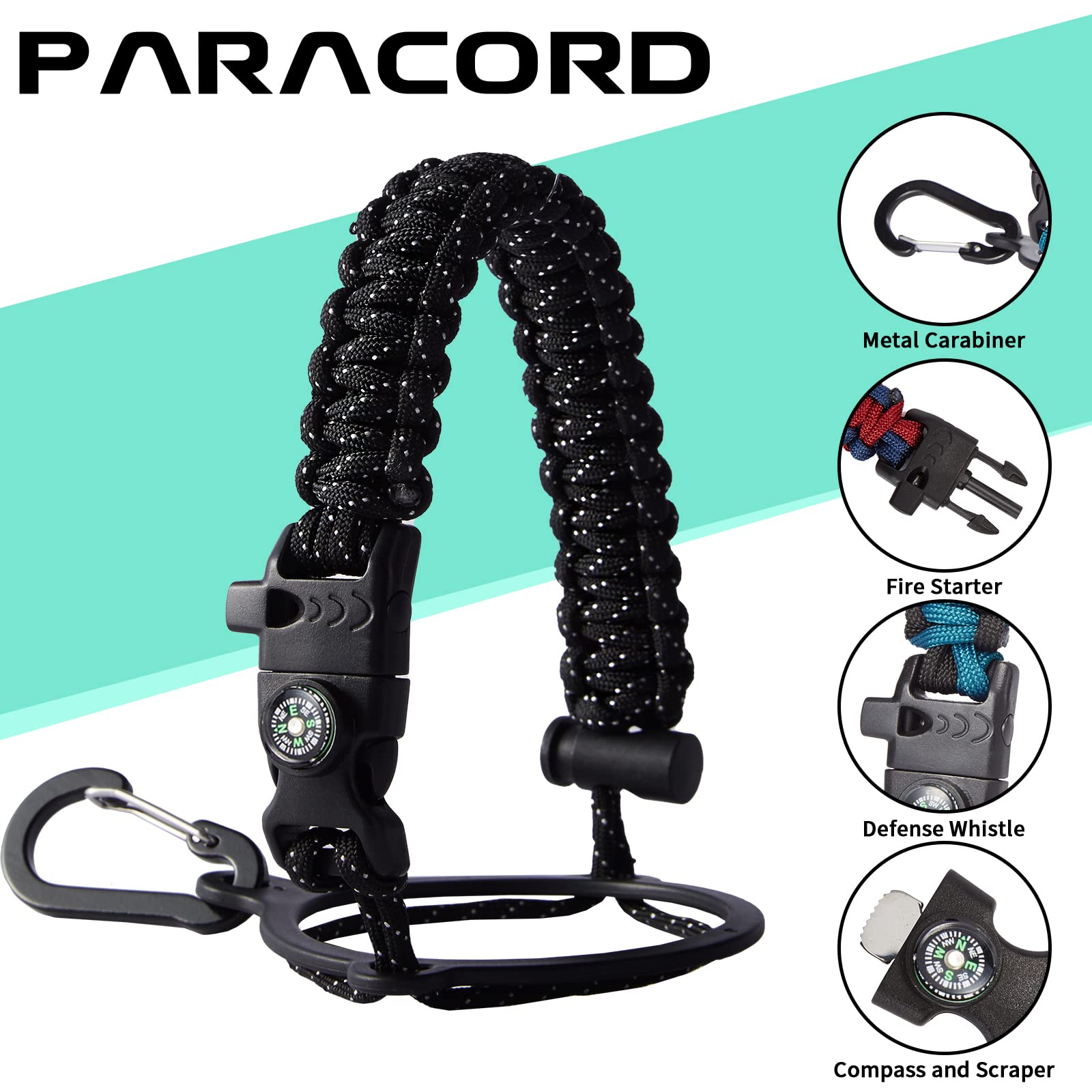 • UNIQUE PARACORD—Perfect Accessories: bright color paracord matches the flask water bottle to give you a youthful vibe while adding a personal style. It comes with a compass, safety loop, metal carabiner, flint, igniter, and whistle to become your survival tool for your wild adventures
