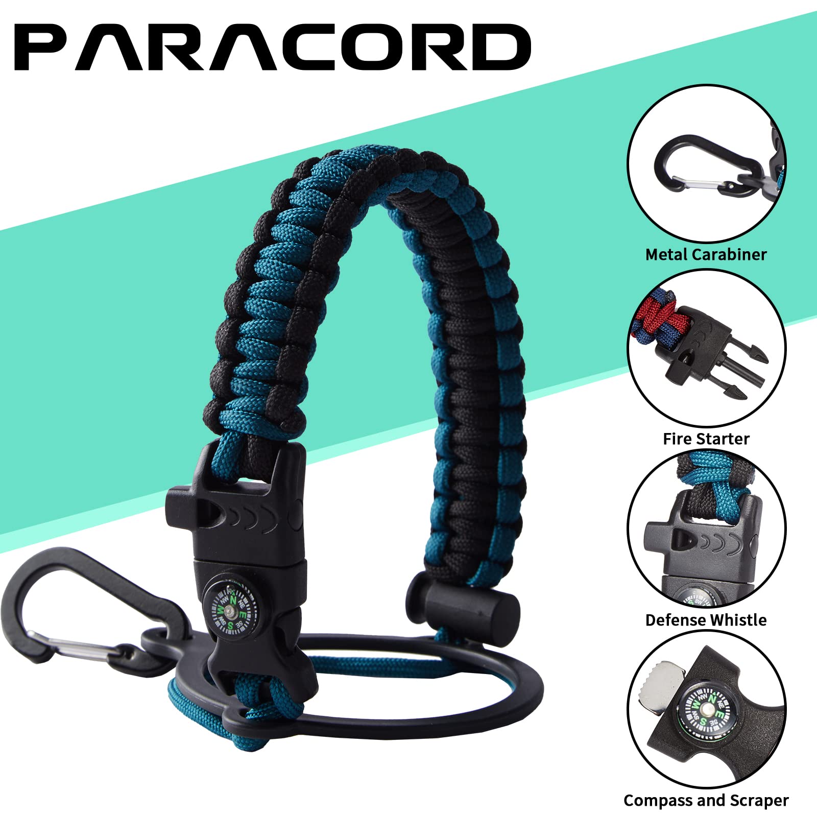 - UNIQUE PARACORD—Perfect Accessories: bright color paracord matches the flask water bottle to give you a youthful vibe while adding a personal style. It comes with a compass, safety loop, metal carabiner, flint, igniter, and whistle to become your survival tool for your wild adventures