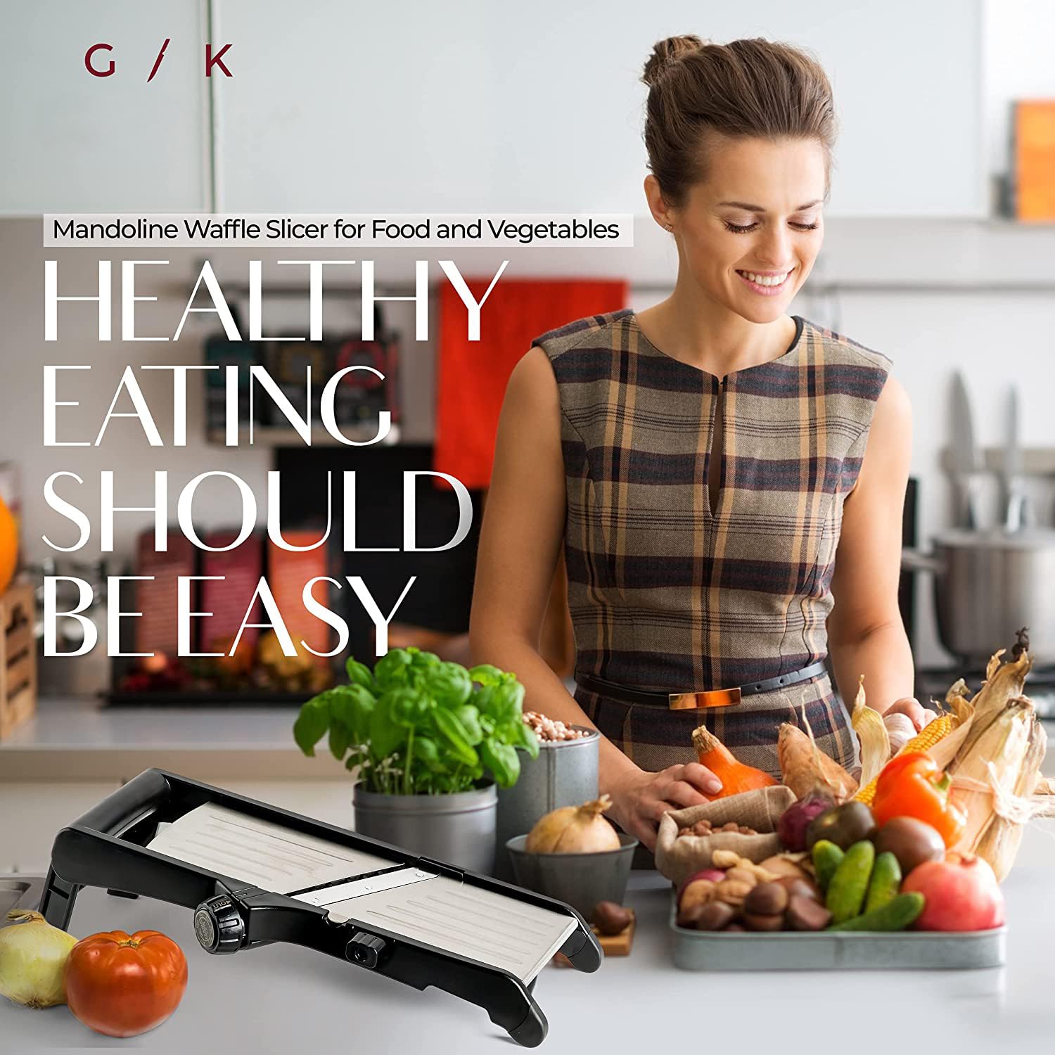 Gramercy Adjustable Mandoline Slicer for Kitchen, Potato Cutter, Vegetable Chopper, Mandolin, Cucumber Slicer- INCLUDING one Pair Cut-Resistant Gloves and Waffle Fry Cutter