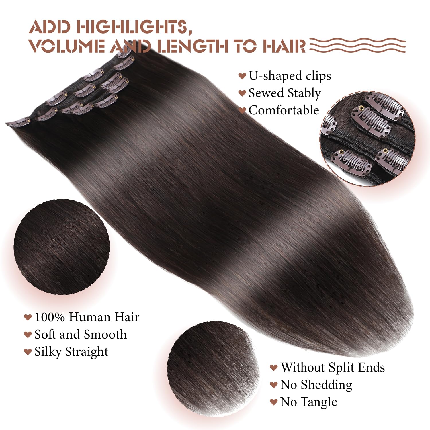 - Quick Wear and Removal: Clip in hair extensions real human hair are very convenient, even beginners can quickly complete the wear. It only takes five minutes to get the appearance you want, It's easy to add volume and length as well as change the color and curl of your hair, very suitable for your daily life and special occasions.