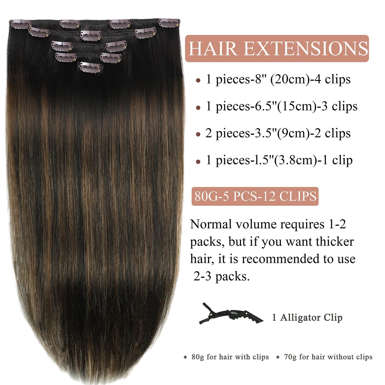 - Specification: 14-22 inches, 5 pieces per set, 80g/2.82oz. We offer a variety of popular colors to choose from according to your preferences based on your hair volume, it is usually recommended to buy 1-2 sets. If you want more thicker hair, it is recommended to buy 2-3 sets.Includes 1 Alligator Clip.