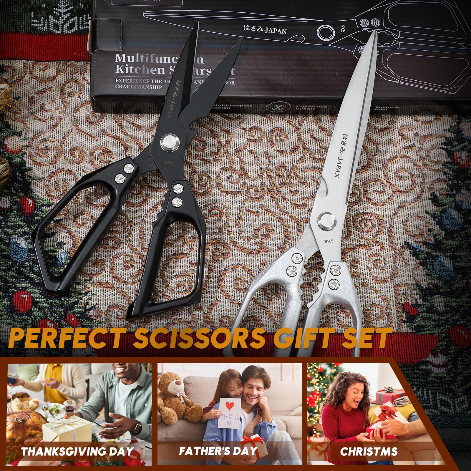 - Gift-Ready & Kitchen-Chic--Presented in a gift box. More than meat cutting scissors: A thoughtful upgrade for grill masters, new homeowners, or busy parents. Ideal for Christmas/Father’s Day/Thanksgiving.