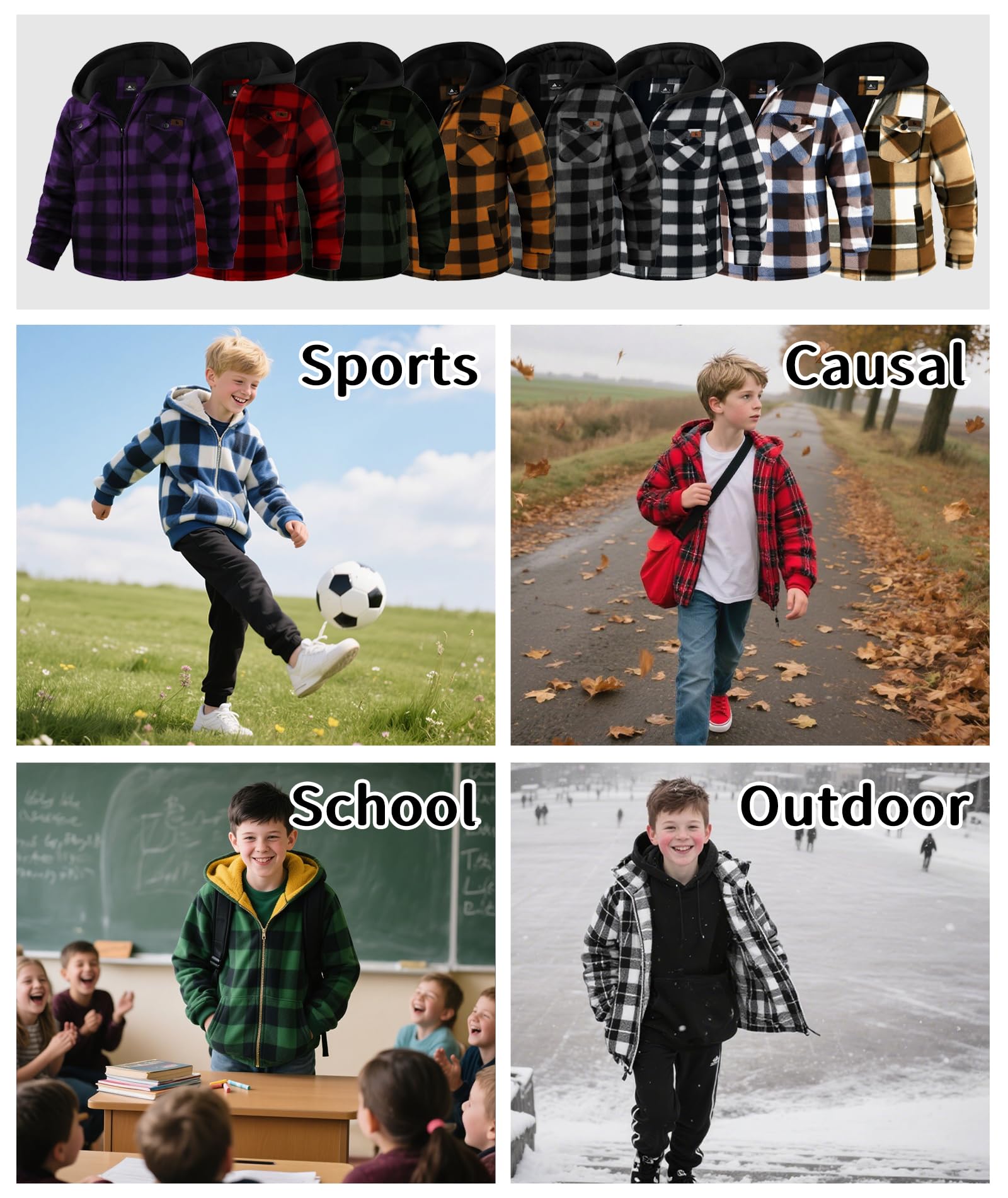 - Various Match:Designed for freezing temperatures, this boys fleece-lined jacket locks in body heat with its thick plush interior, keeping your child warm all winter long. The classic plaid-patterned design pairs easily with jeans, sweatpants, or school uniforms, making it a versatile choice for daily wear, weekend outings, or holiday gatherings