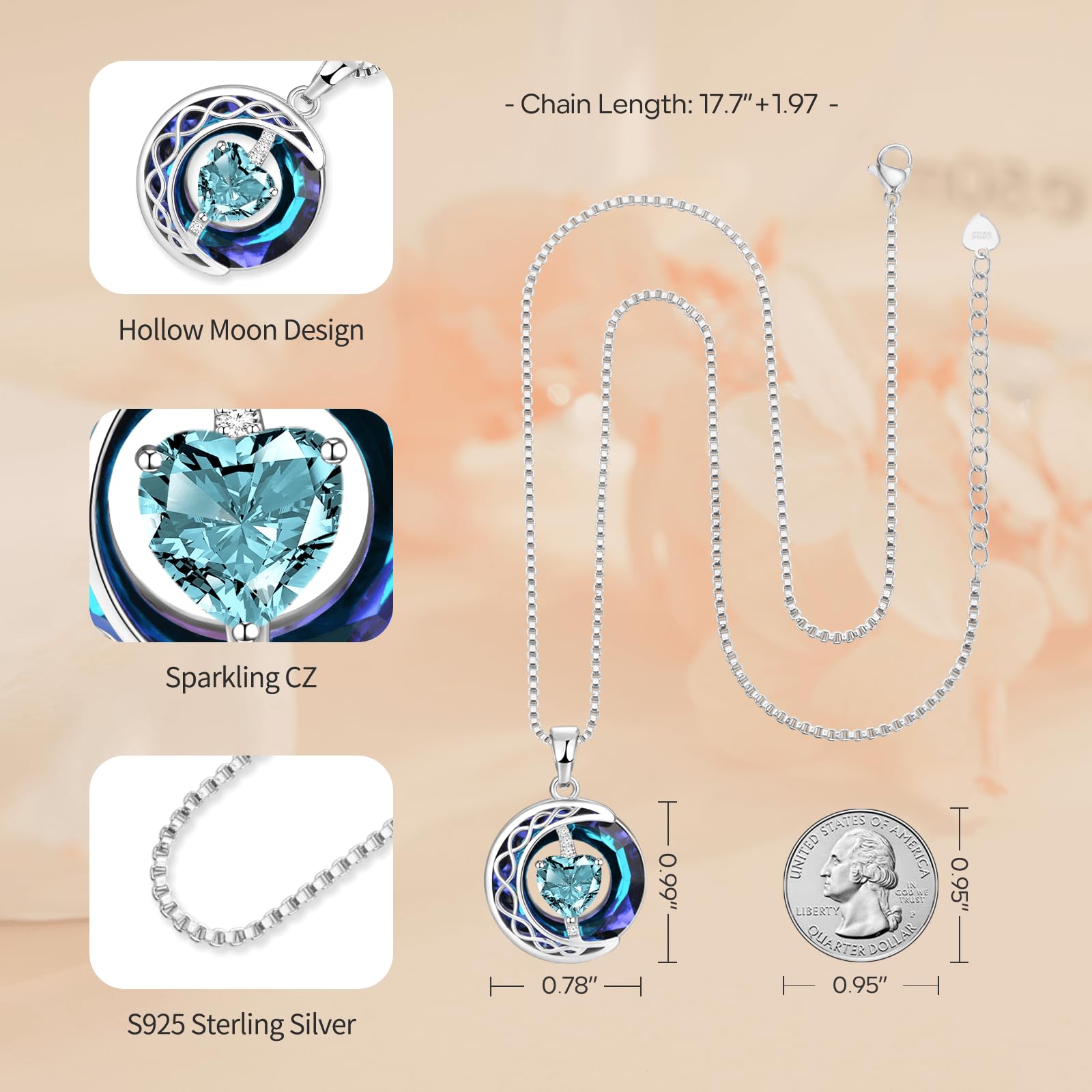 LIANYU Necklace for Women Sapphire Necklace Gifts for Wife Christmas Birthday Valentine Anniversary-Mar
