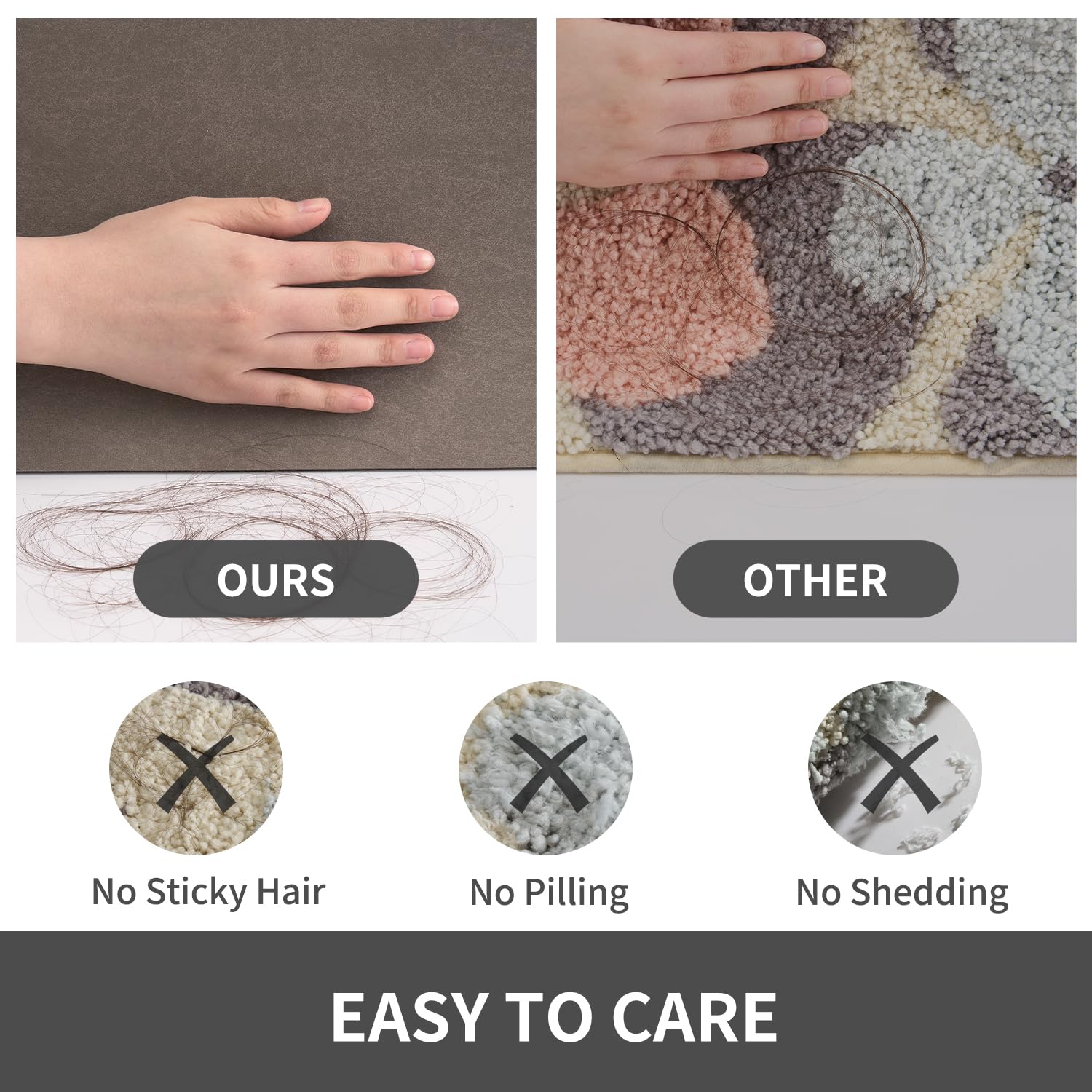 - 【No Shedding and Durable】This bathroom floor mats is very soft and smooth,different with traditional chenille rugs for bathroom.It will be more durable,and do not shedding or smelling,fading,wearing, or hair hiding