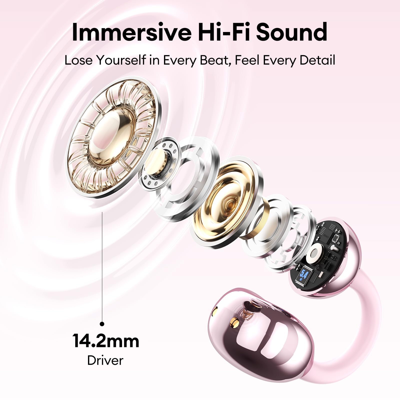 - Immersive Hi-Fi Sound & Crystal-Clear Calls: Powered by 16.3mm dynamic drivers and ENC noise reduction technology, these clip on headphones deliver studio-grade audio with deep bass and crisp vocals. Advanced directional audio ensures zero sound leakage, while dual mics block 90% background noise for face-to-face call clarity even in windy environments