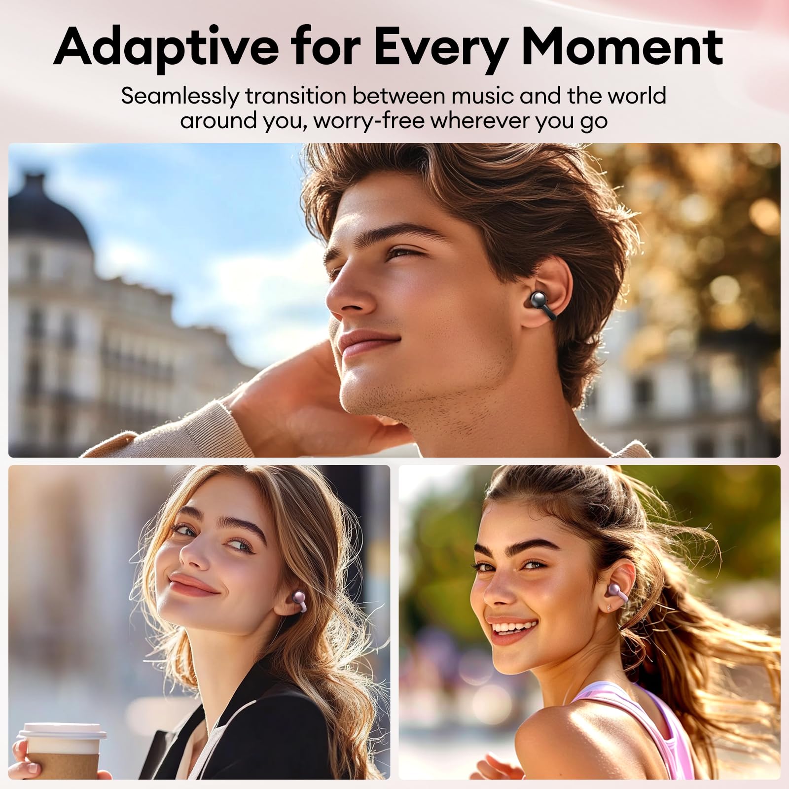 - Ultra-Lightweight & Secure Open-Ear Design: Experience zero-pressure comfort with ergonomic clip on earbuds, weighing only 4.1g per ear. The open-ear design allows natural airflow, eliminating ear canal fatigue even during 10+ hours of continuous wear. Stay aware of traffic, conversations, or gym instructions while enjoying music—perfect for runners, cyclists, and safety-conscious users