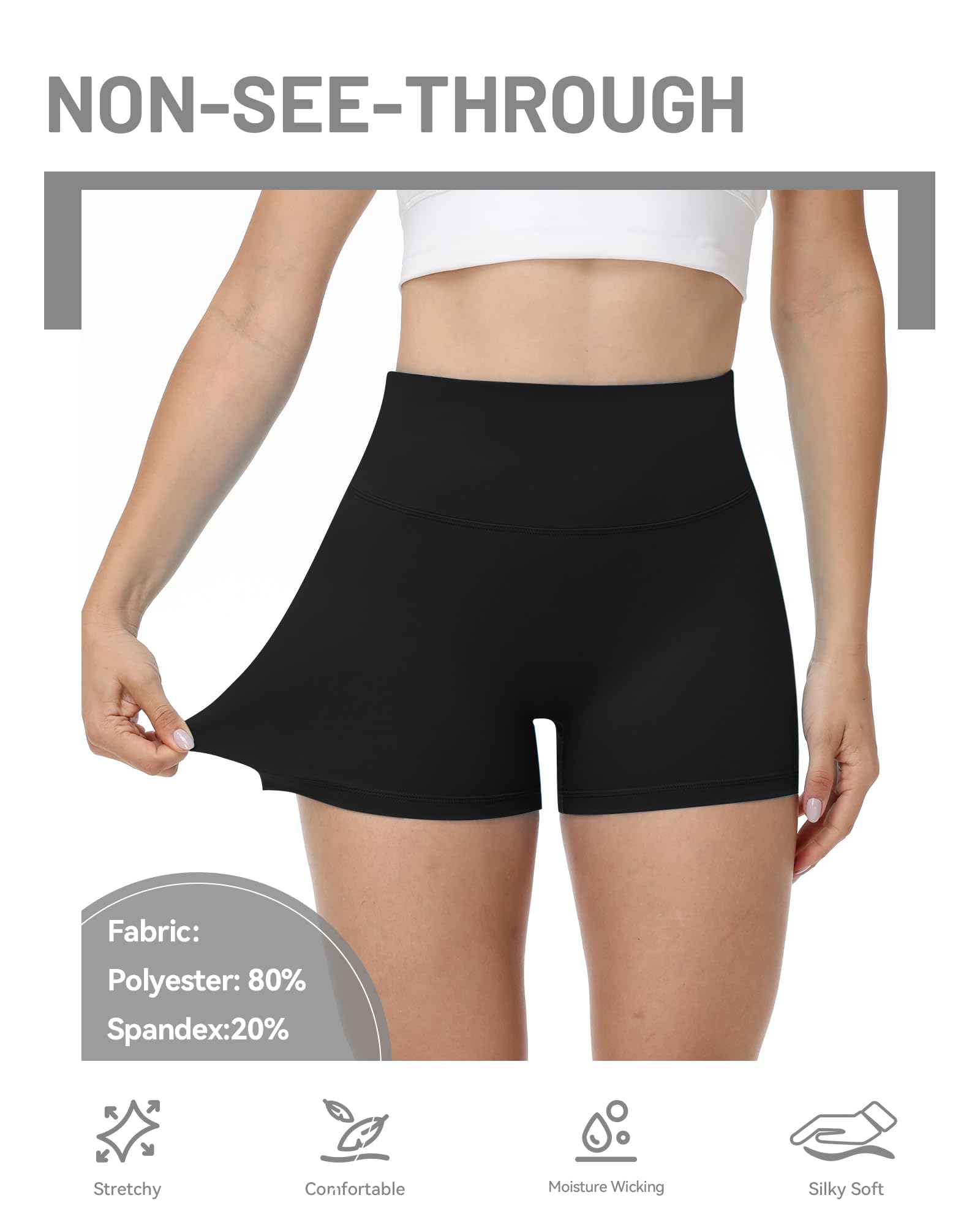 - Non-See-Through : Women workout shorts are made with an updated non-transparent fabric, containing 80% polyester and 20% spandex,perfectly contouring to your thighs, They don’t ride up, non see-through, squat proof accidental exposure