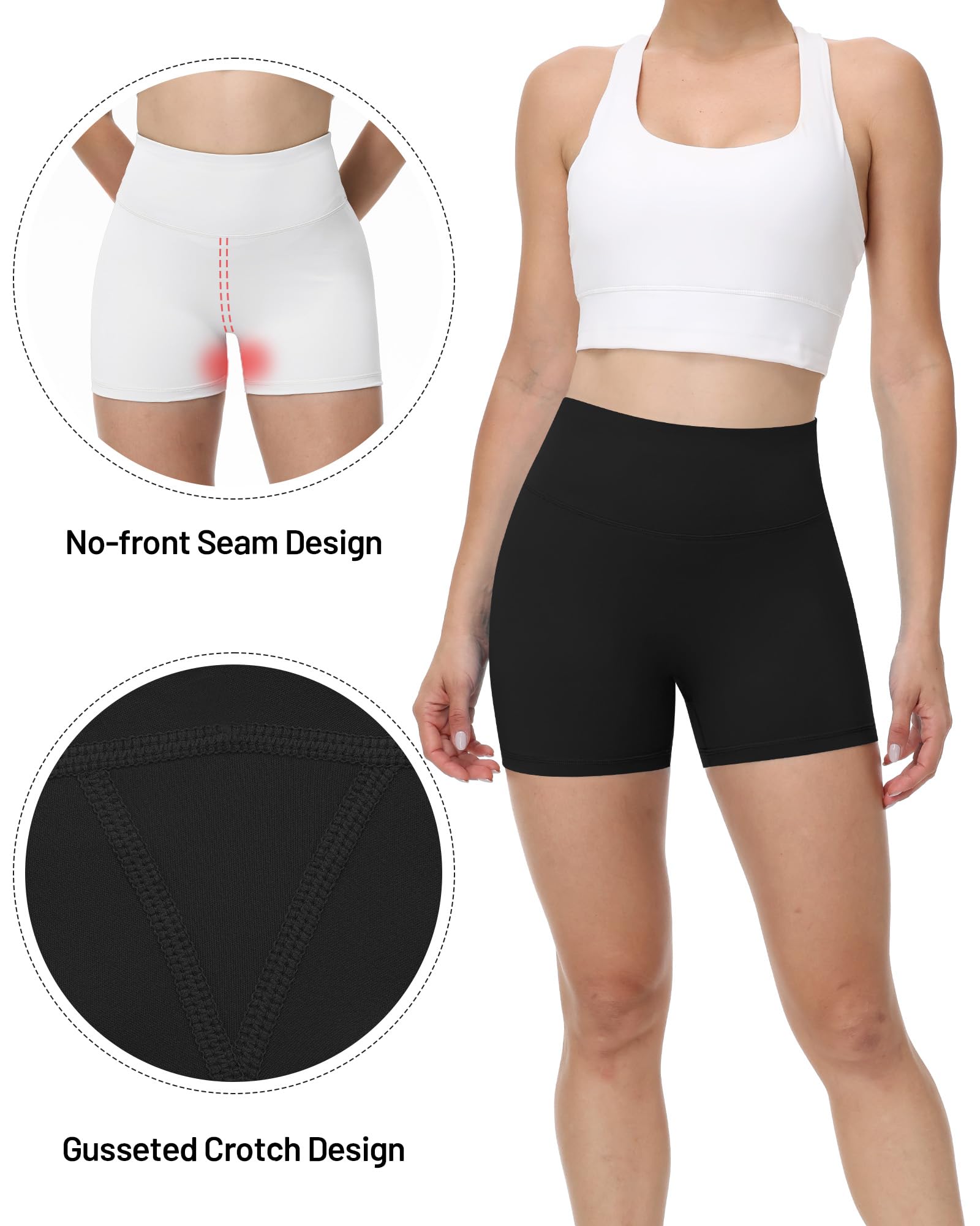 - No Front Seam Biker Shorts : 3"/5"/8" women workout shorts with no front seam construction eliminate chafing and awkward lines, Camel toe-free fit providing greater freedom of movement during intense movements, ensures you confidence and comfortable
