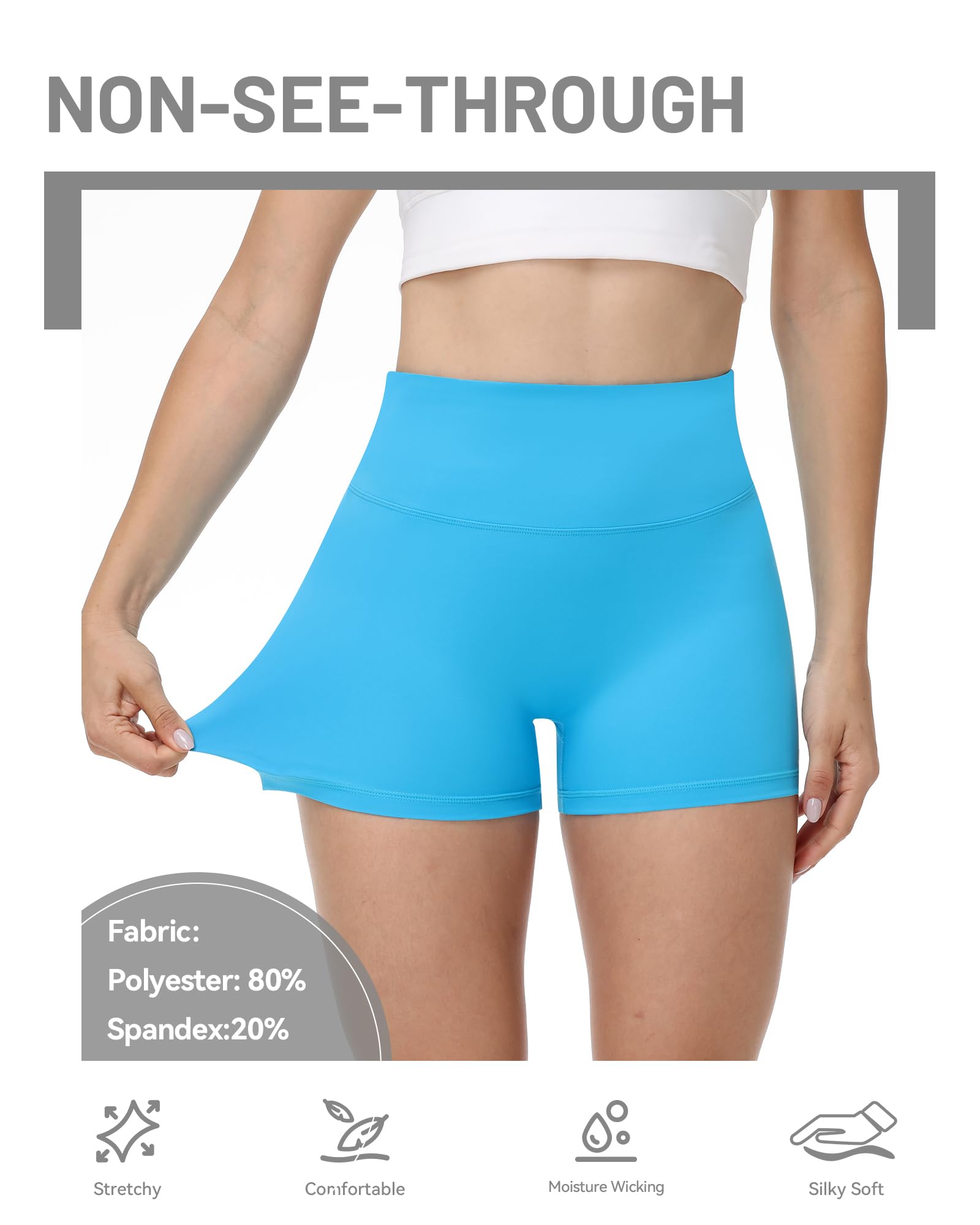 - Non-See-Through : Women workout shorts are made with an updated non-transparent fabric, containing 80% polyester and 20% spandex,perfectly contouring to your thighs, They don’t ride up, non see-through, squat proof accidental exposure