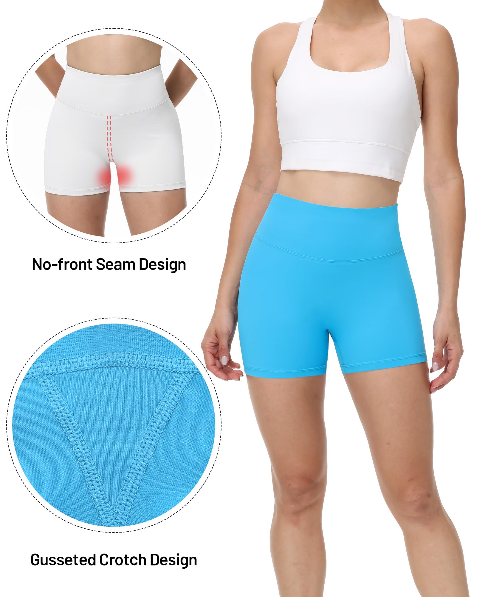 - No Front Seam Biker Shorts : 3"/5"/8" women workout shorts with no front seam construction eliminate chafing and awkward lines, Camel toe-free fit providing greater freedom of movement during intense movements, ensures you confidence and comfortable