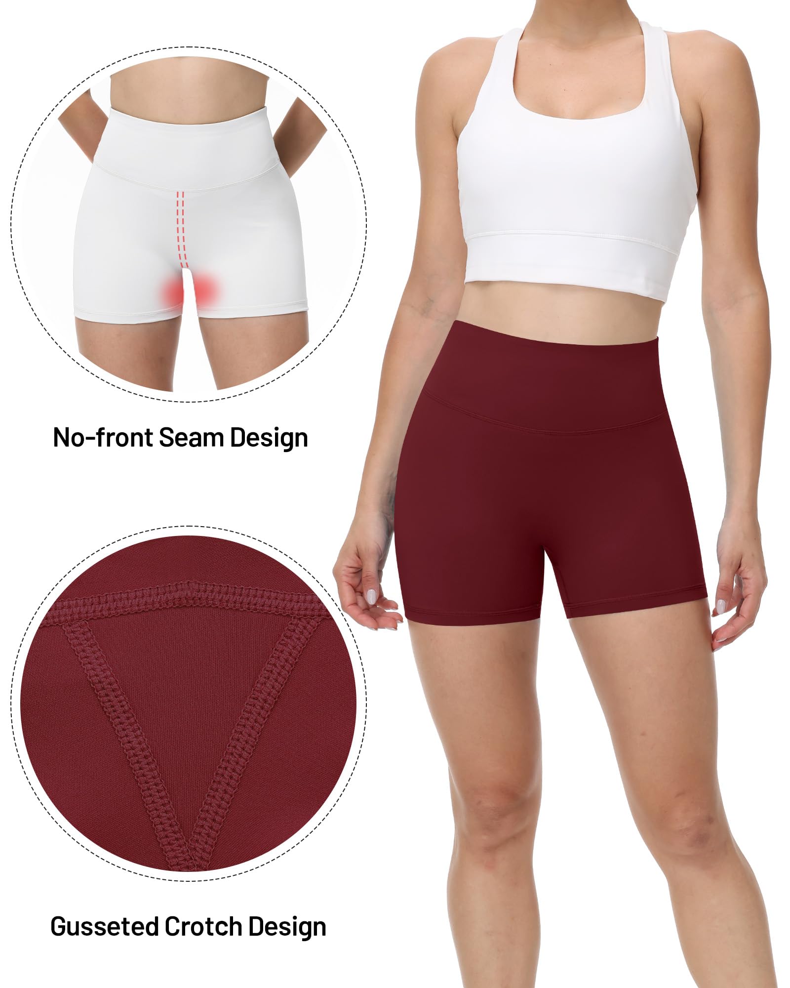 - No Front Seam Biker Shorts : 3"/5"/8" women workout shorts with no front seam construction eliminate chafing and awkward lines, Camel toe-free fit providing greater freedom of movement during intense movements, ensures you confidence and comfortable