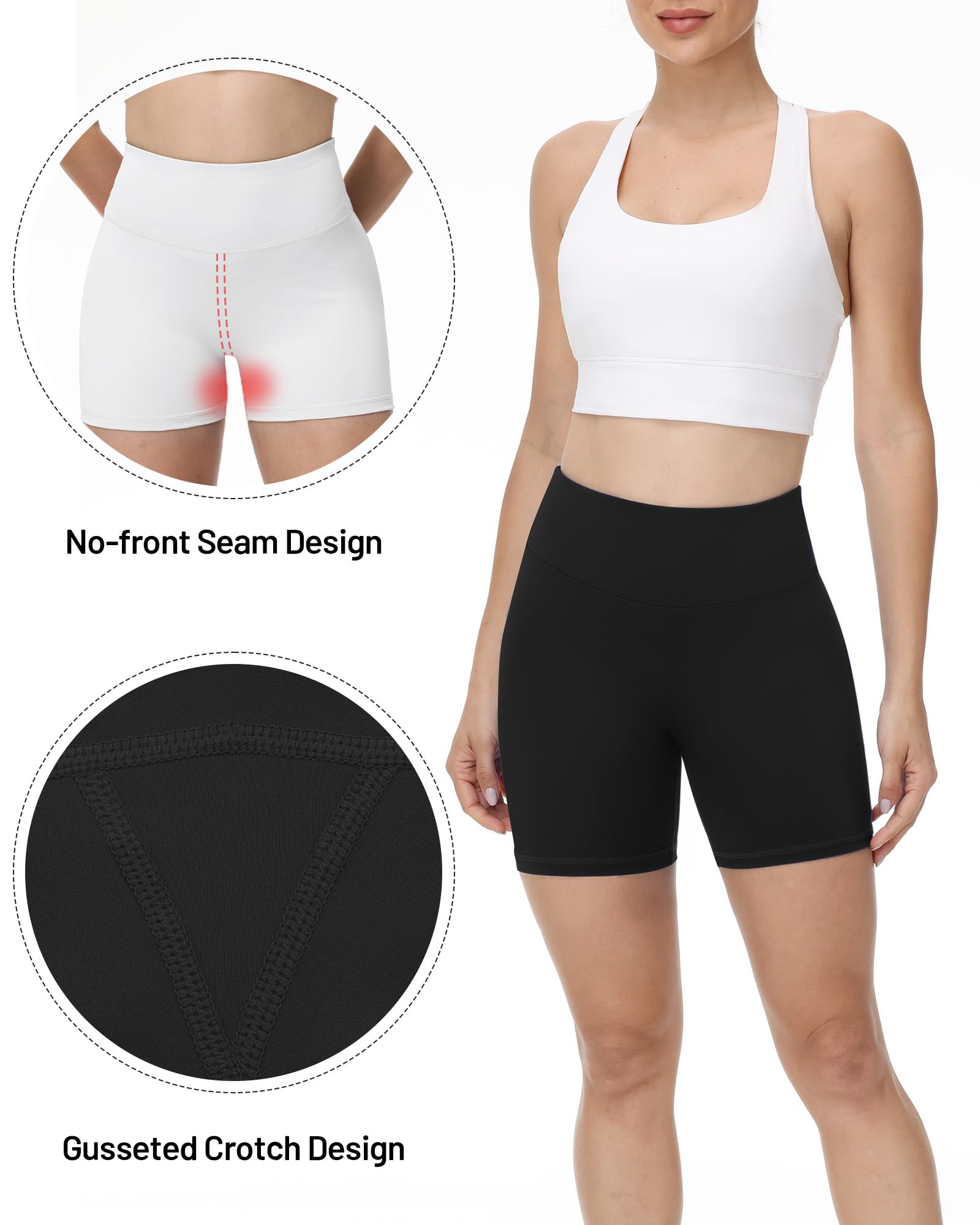 - No Front Seam Biker Shorts : 3"/5"/8" women workout shorts with no front seam construction eliminate chafing and awkward lines, Camel toe-free fit providing greater freedom of movement during intense movements, ensures you confidence and comfortable