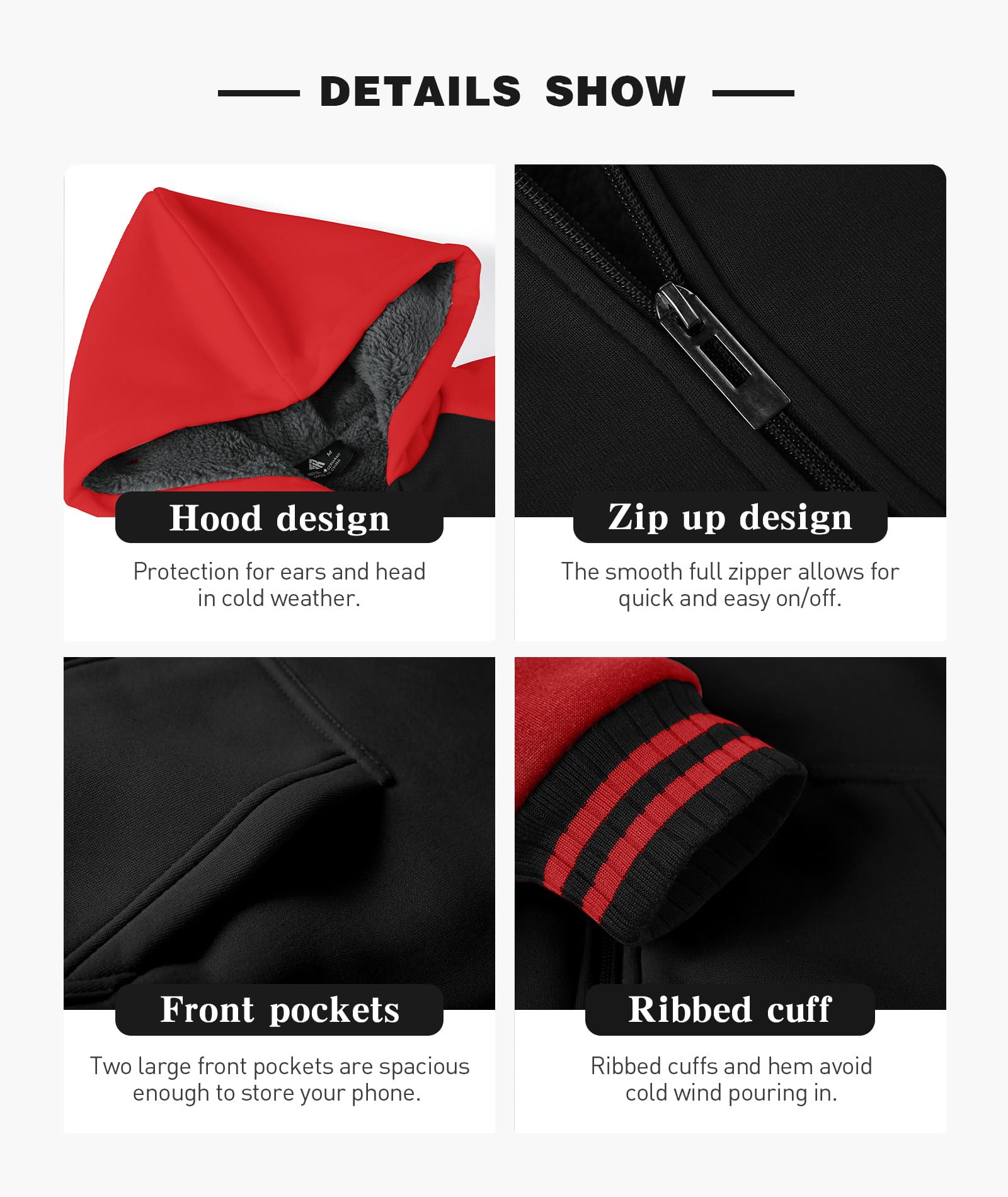 - FRONT ZIPPER&POCKET - The front full-length zipper makes for easy wear and layering, while the kangaroo pockets provide a safe spot to keep his/her hands warm and small essentials close by