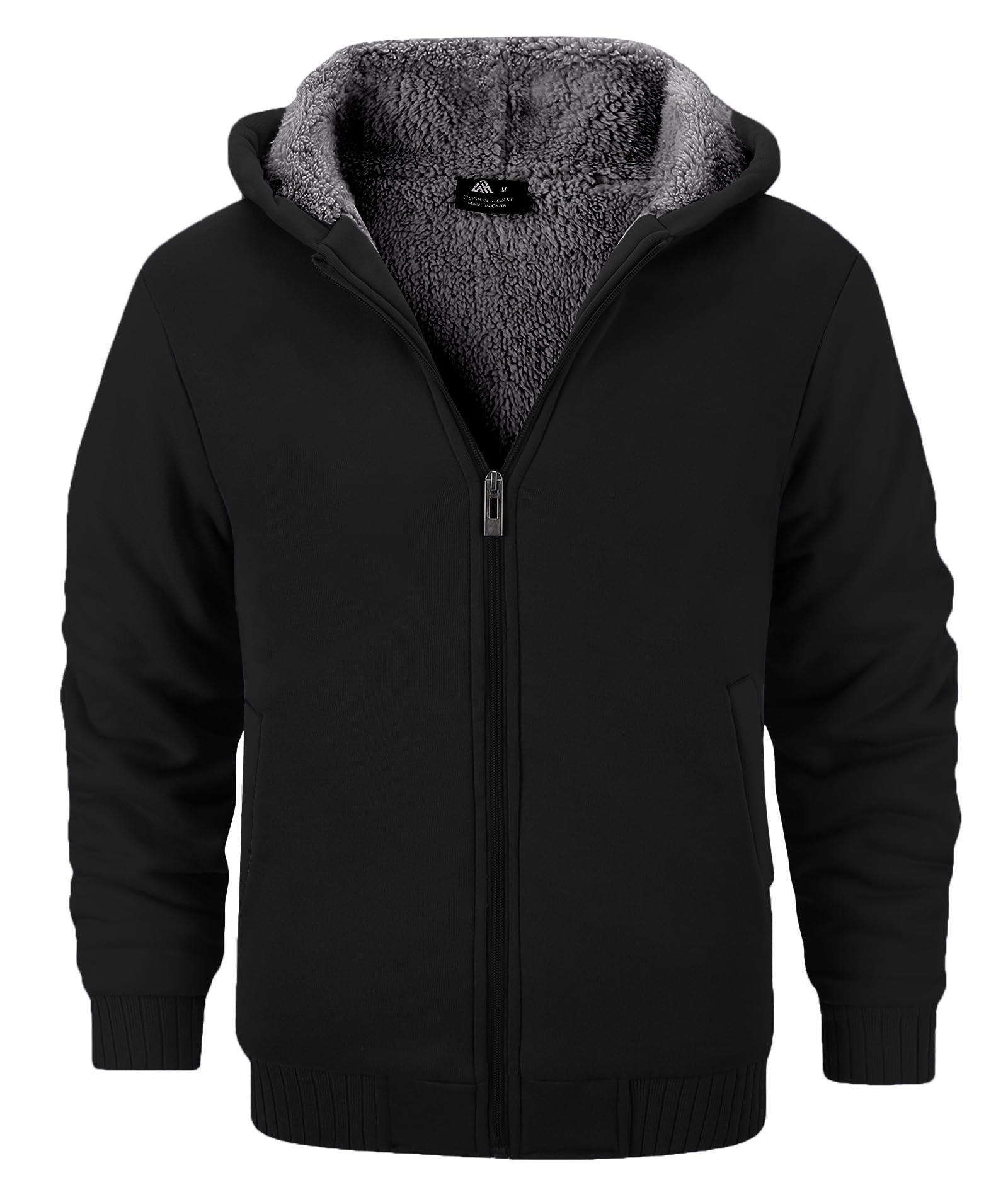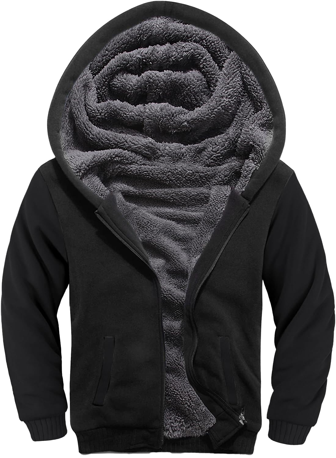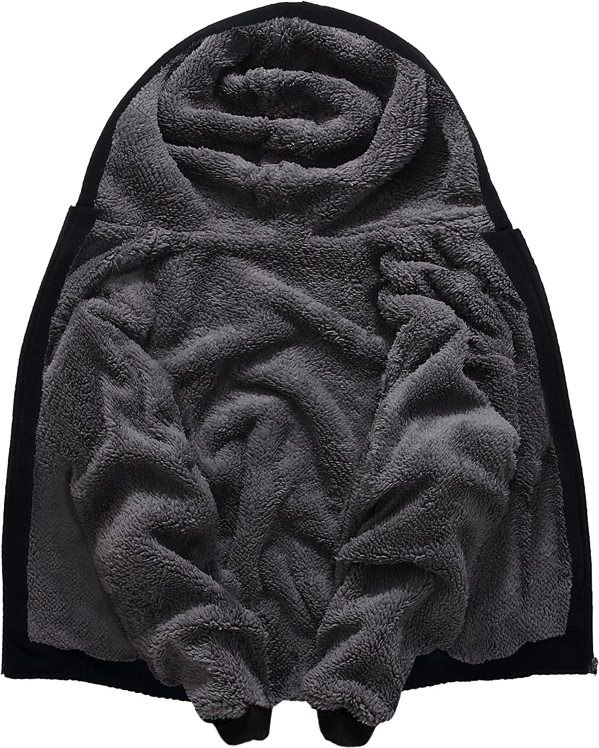 SECOOD Kids Hoodie Fleece Jacket Warm Sherpa Lined Zip Up Hooded Sweatshirt Soft Winter Coat Boys Girls School Outerwear A Black