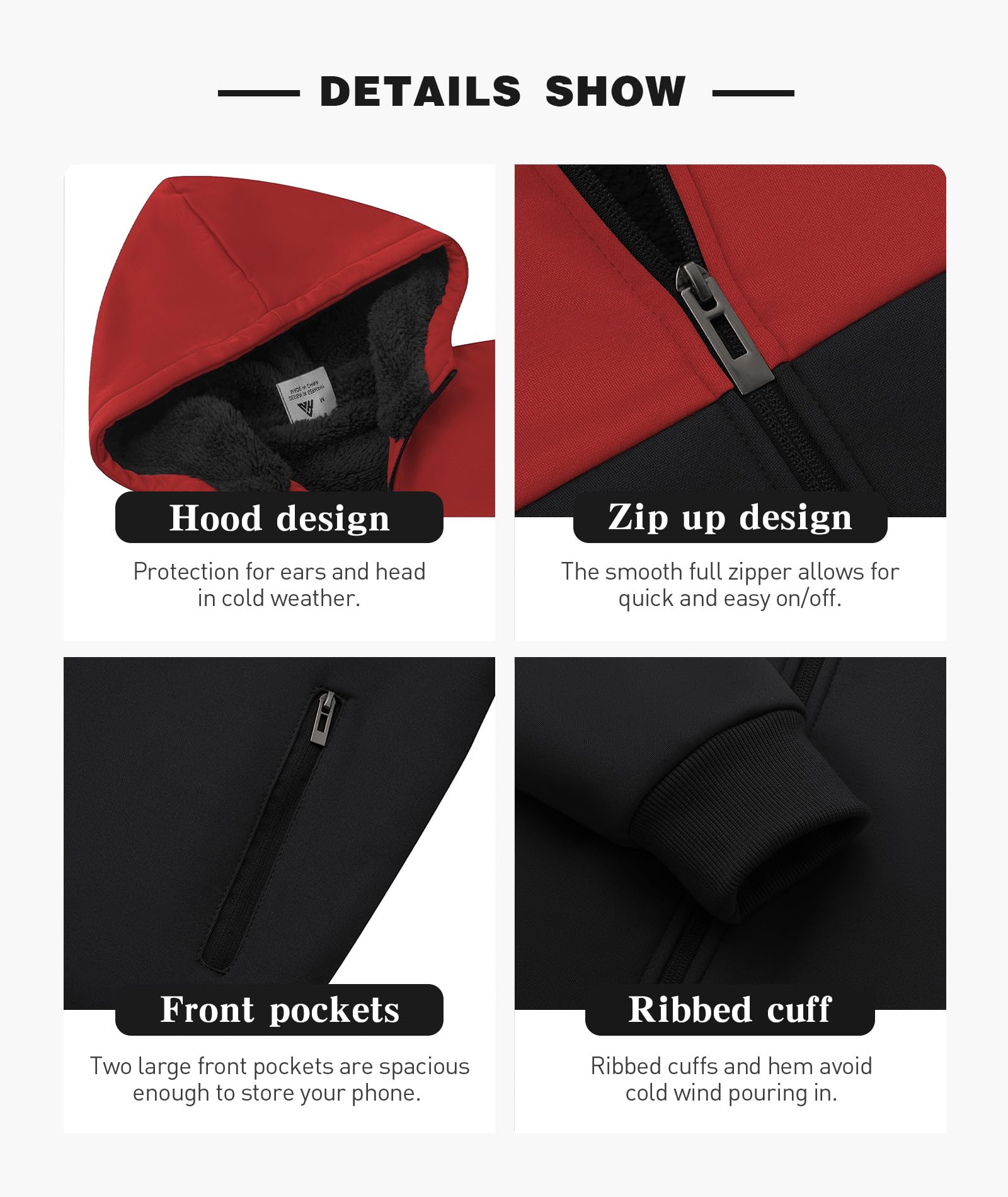 - FRONT ZIPPER&POCKET - The front full-length zipper makes for easy wear and layering, while the kangaroo pockets provide a safe spot to keep his/her hands warm and small essentials close by