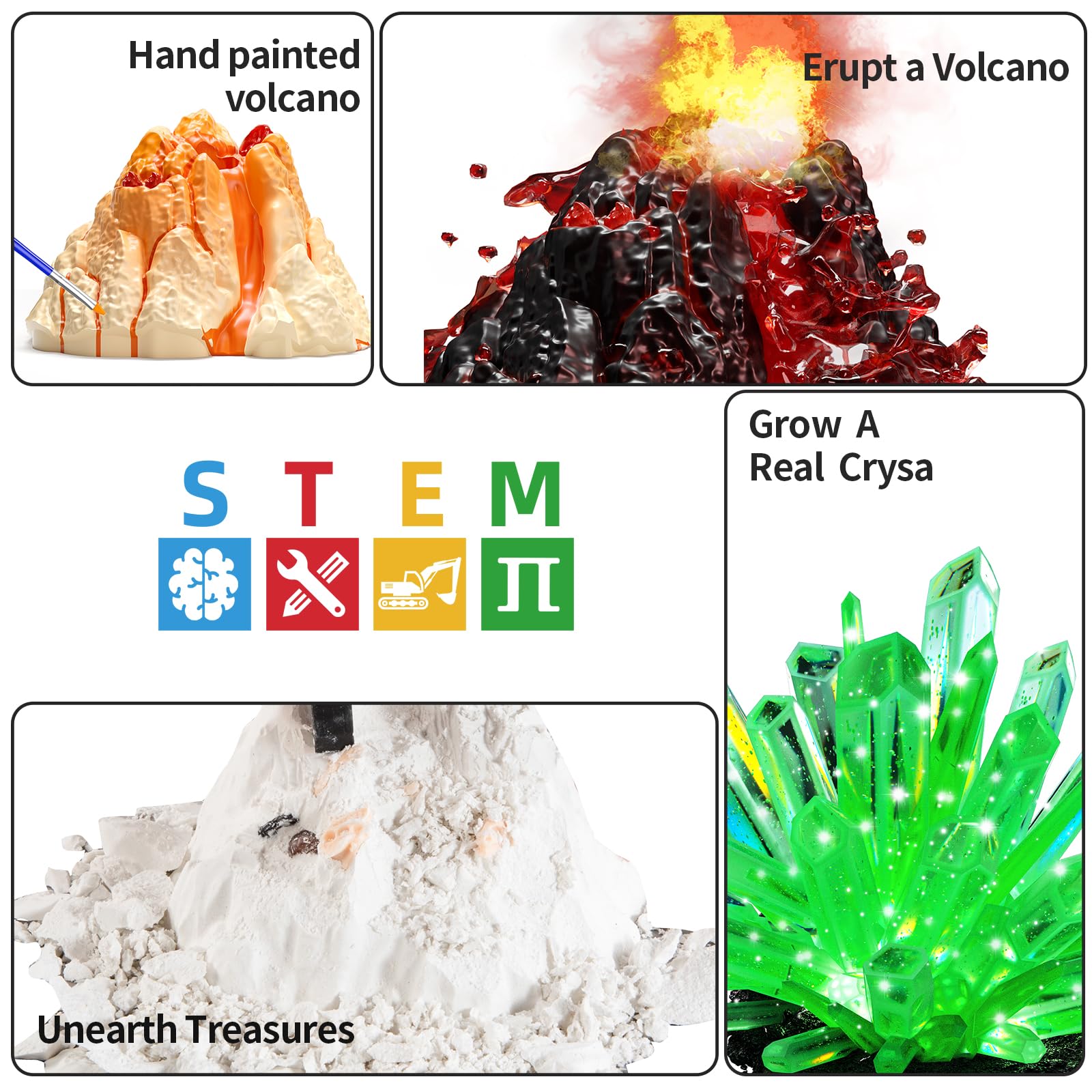 • Massive Science Kits for Curious Kids - 130+ experiment activities, kids will paint and erupt a volcano, grow a crystal, and dig up a real fossil. Perfect for science lovers ages 6, 7 8, 9, 10, 11, 12.