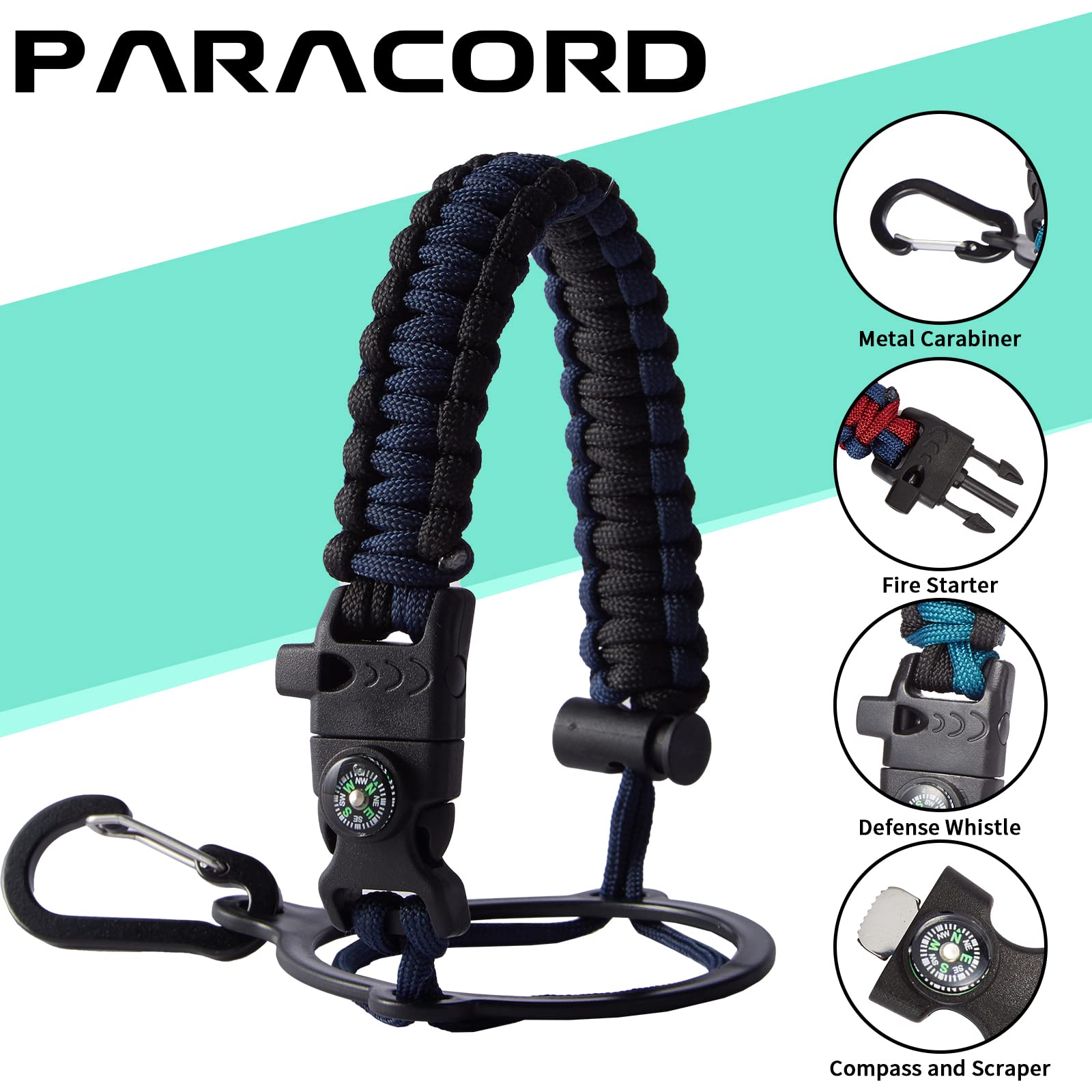 - UNIQUE PARACORD HANDLE: Bright color paracord matches the flask water bottle to give you a youthful vibe while adding a personal style. With a compass, safety loop, metal carabiner, flint, igniter and whistle to become your survival tool, making the 32 oz stainless steel water bottle with paracord an ideal survival kit for expeditions in the wild