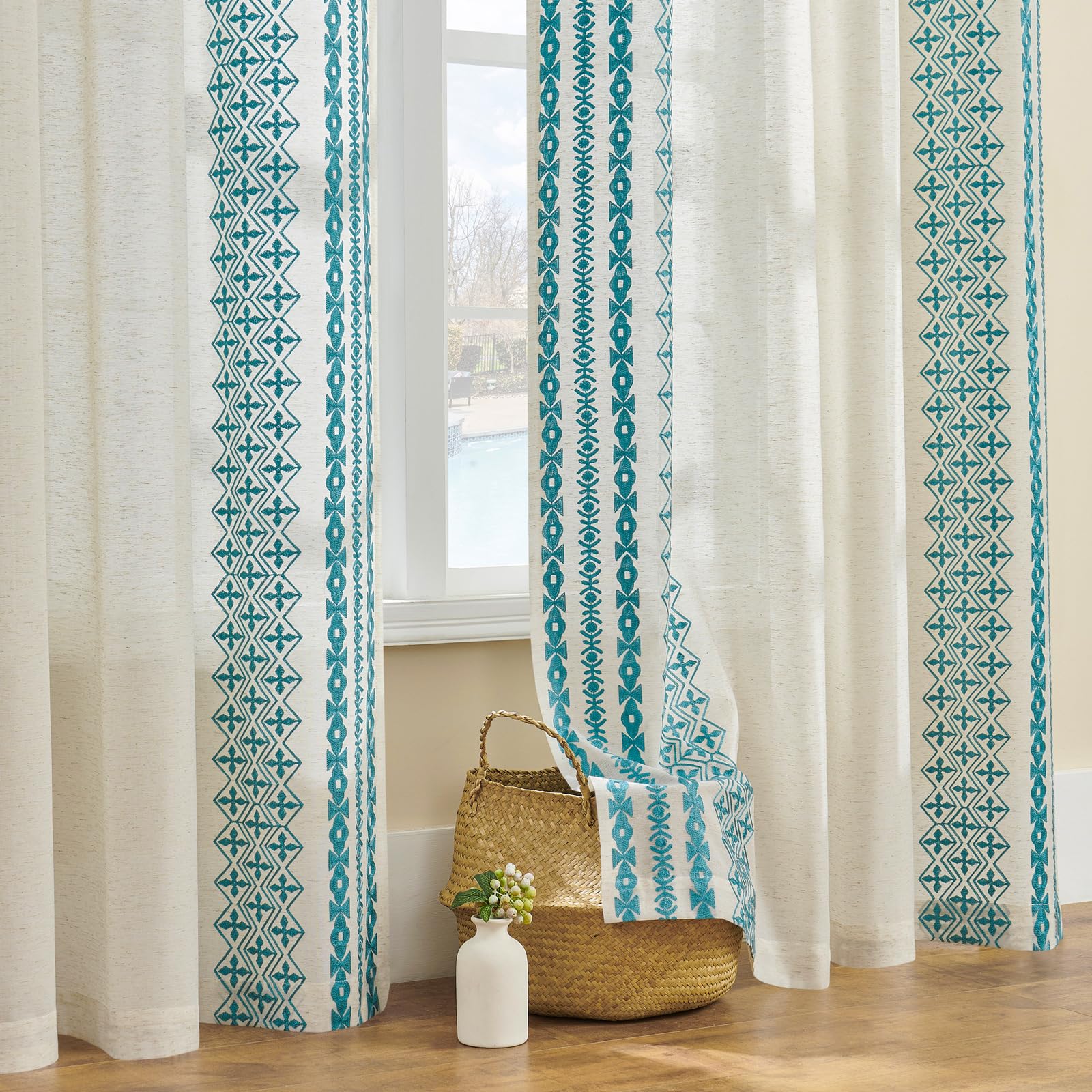 - PACKAGE: Include teal blue boho curtains 2 panels, and each measures 52 inches wide by 84 inches long, total 104''x84''. Each panel has 8 silver grommets, easy to hang up and fit the curtain rods within 1.6'' diameter.