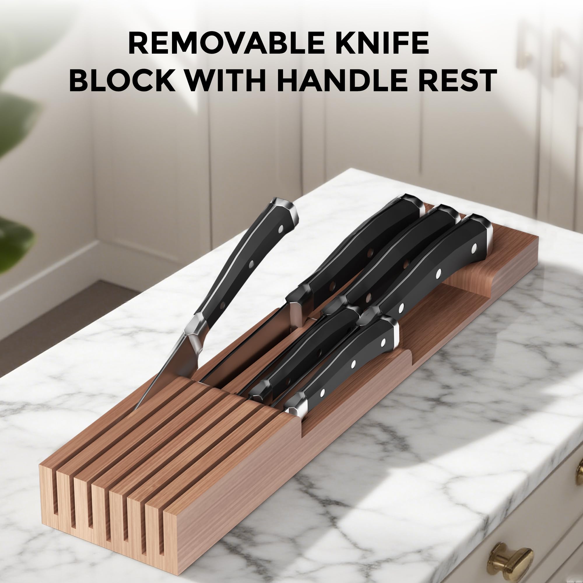 - 【With Detachable Knife Rack】: This utensil organizer can hold up to 7 knives. Safely store your knives and other sharp items on the organizer, providing a safer and more convenient knife storage solution for your kitchen. The knife rack is also detachable, meaning you can easily remove it, clean it, and re-install it as needed