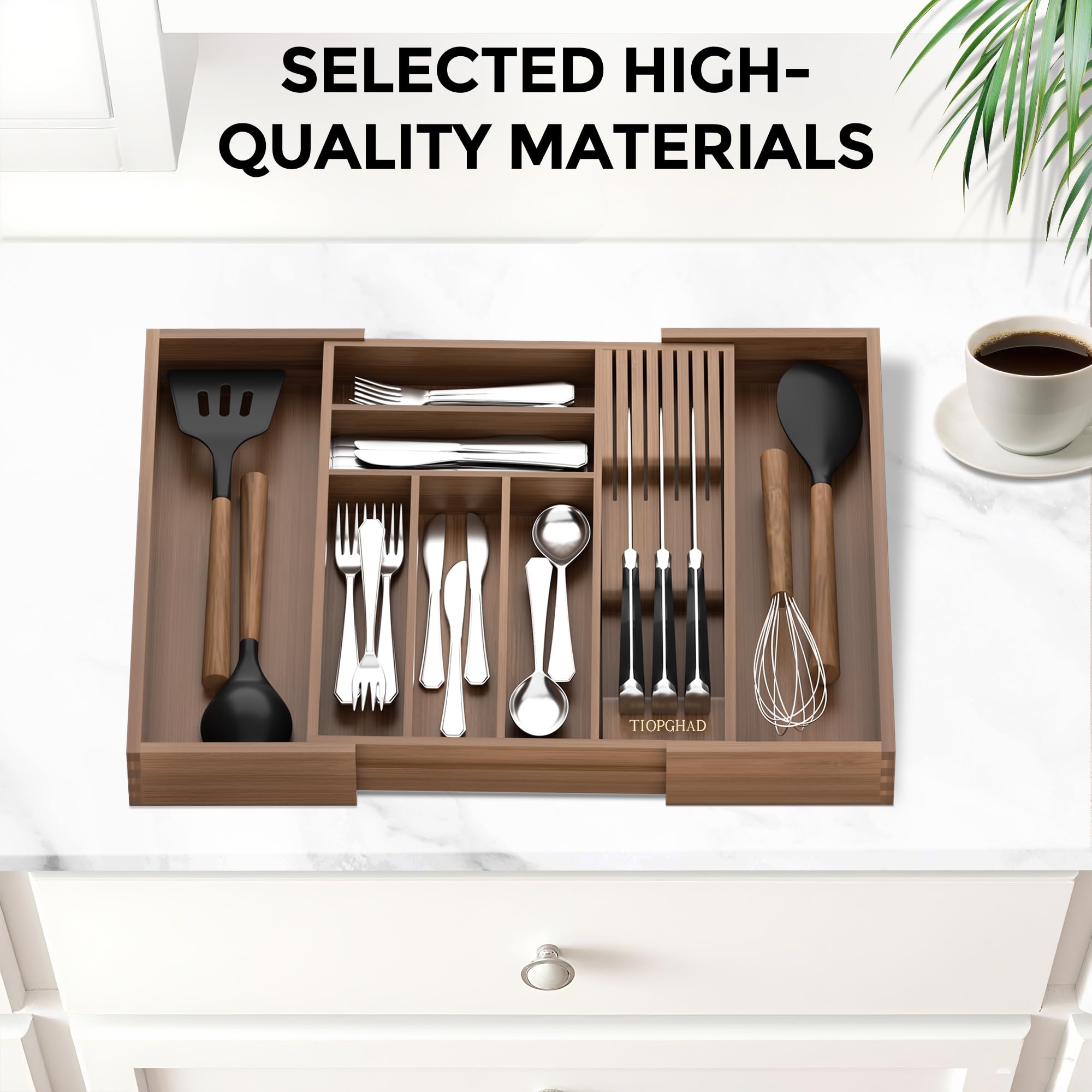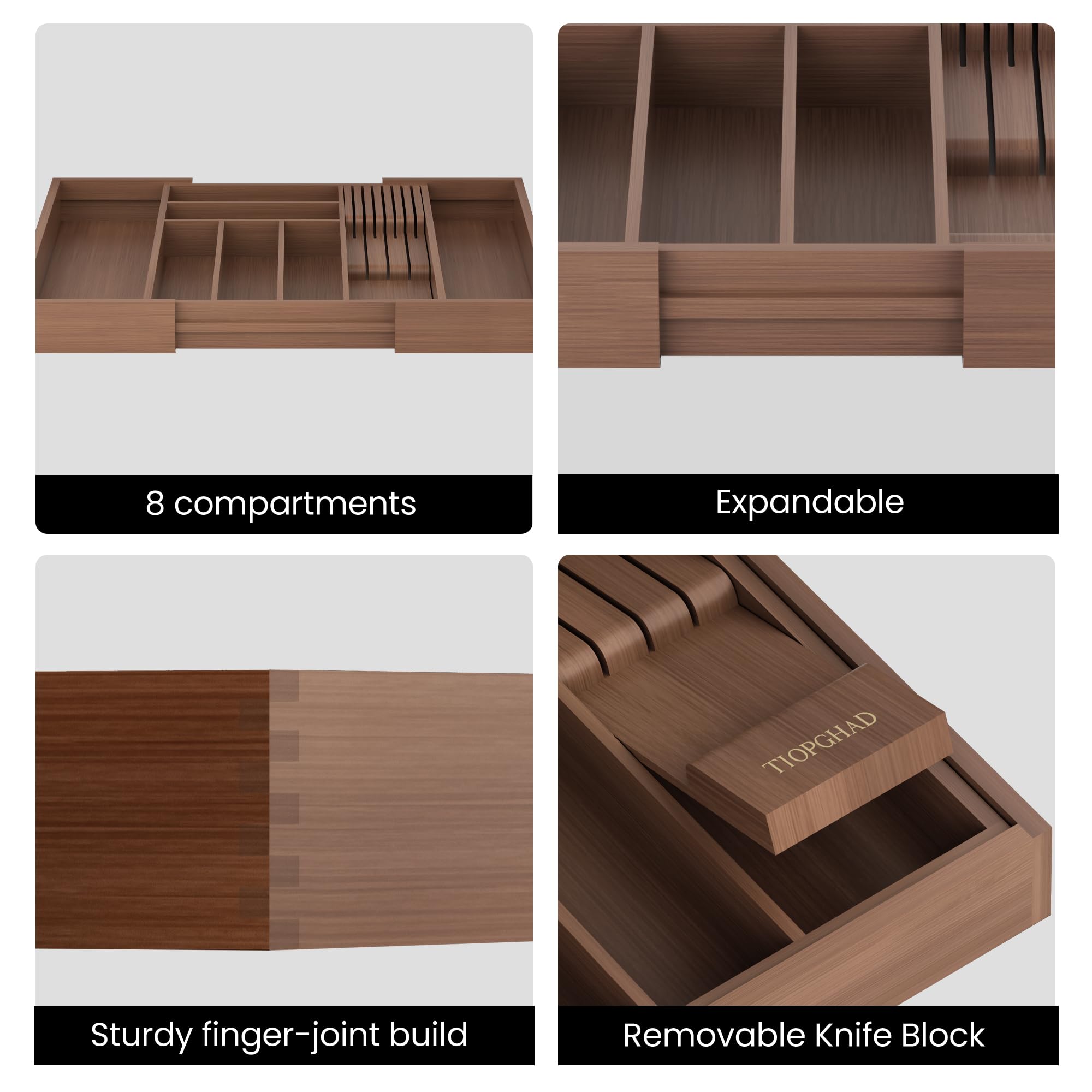 - 【Expandable】: The drawer organizer can expand from 12.6 inches to 21.45 inches wide, fitting most drawers and maximizing drawer storage space. When fully extended, it fits drawers up to 23 x 3 x 18 inches, and when fully collapsed, it fits drawers up to 14 x 3 x 18 inches. It features up to 8 compartments, keeping your drawers tidy, convenient, and practical, making it easy to find what you need