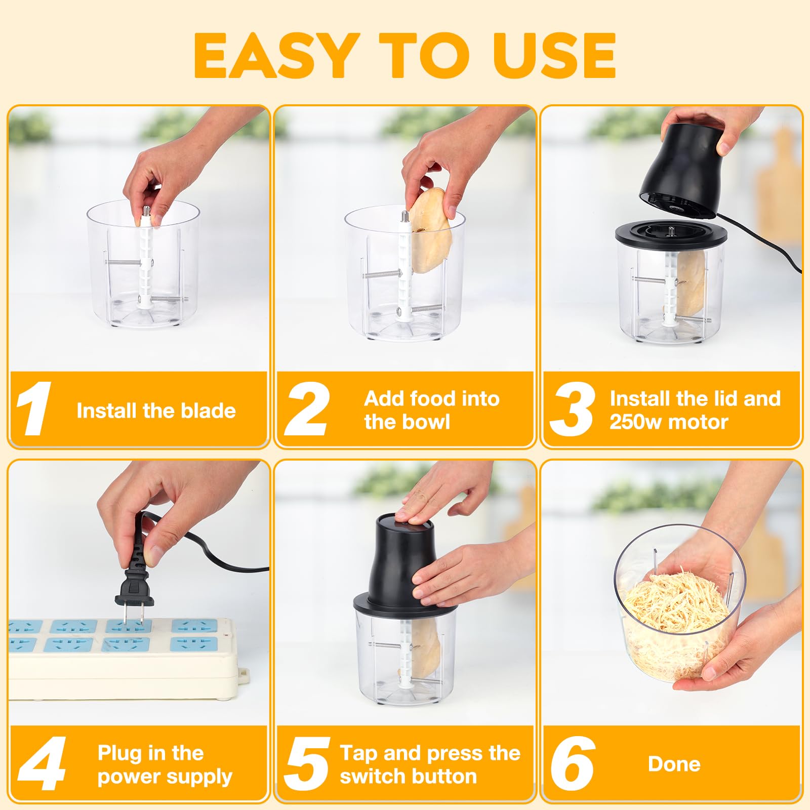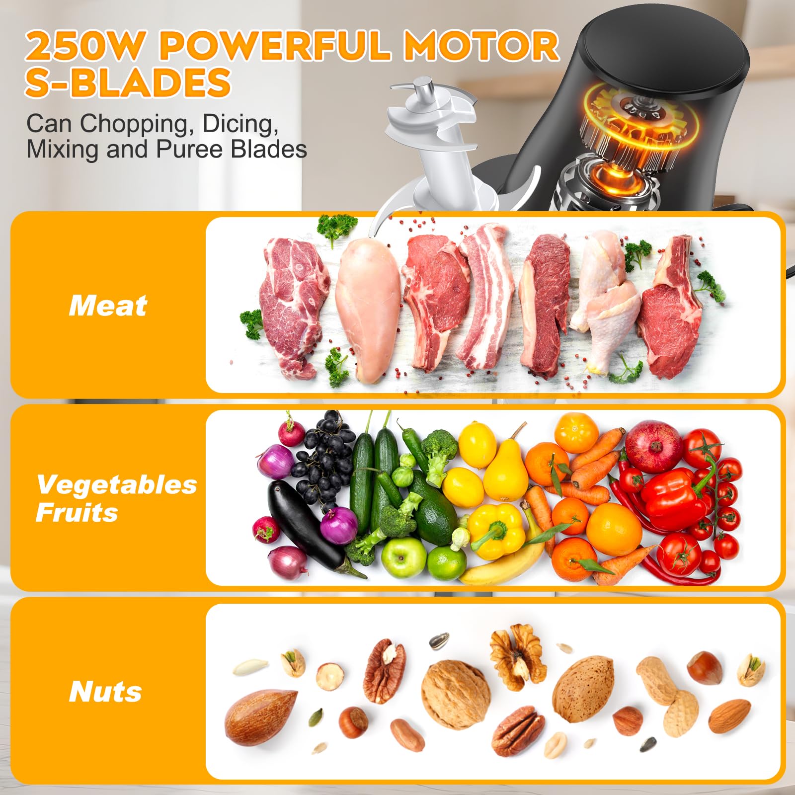 - MULTI-FUNCTION: Electric chicken shredder features Wire Cutting Knife and S-Blades for all food processing needs; 250W all-copper motor ensures durability with overheat protection (NOTE: It auto-cuts power on overheating; wait for cool down to restart)