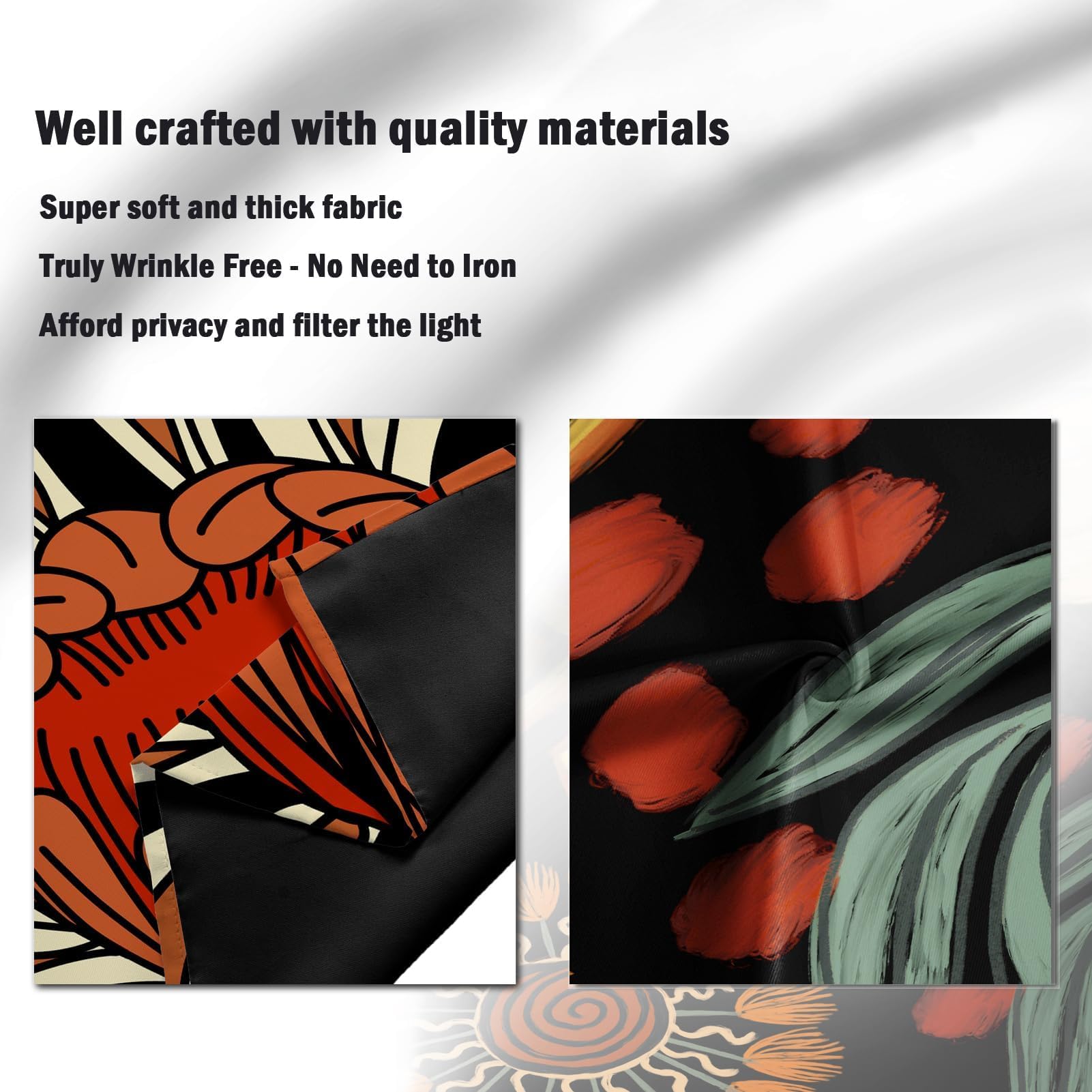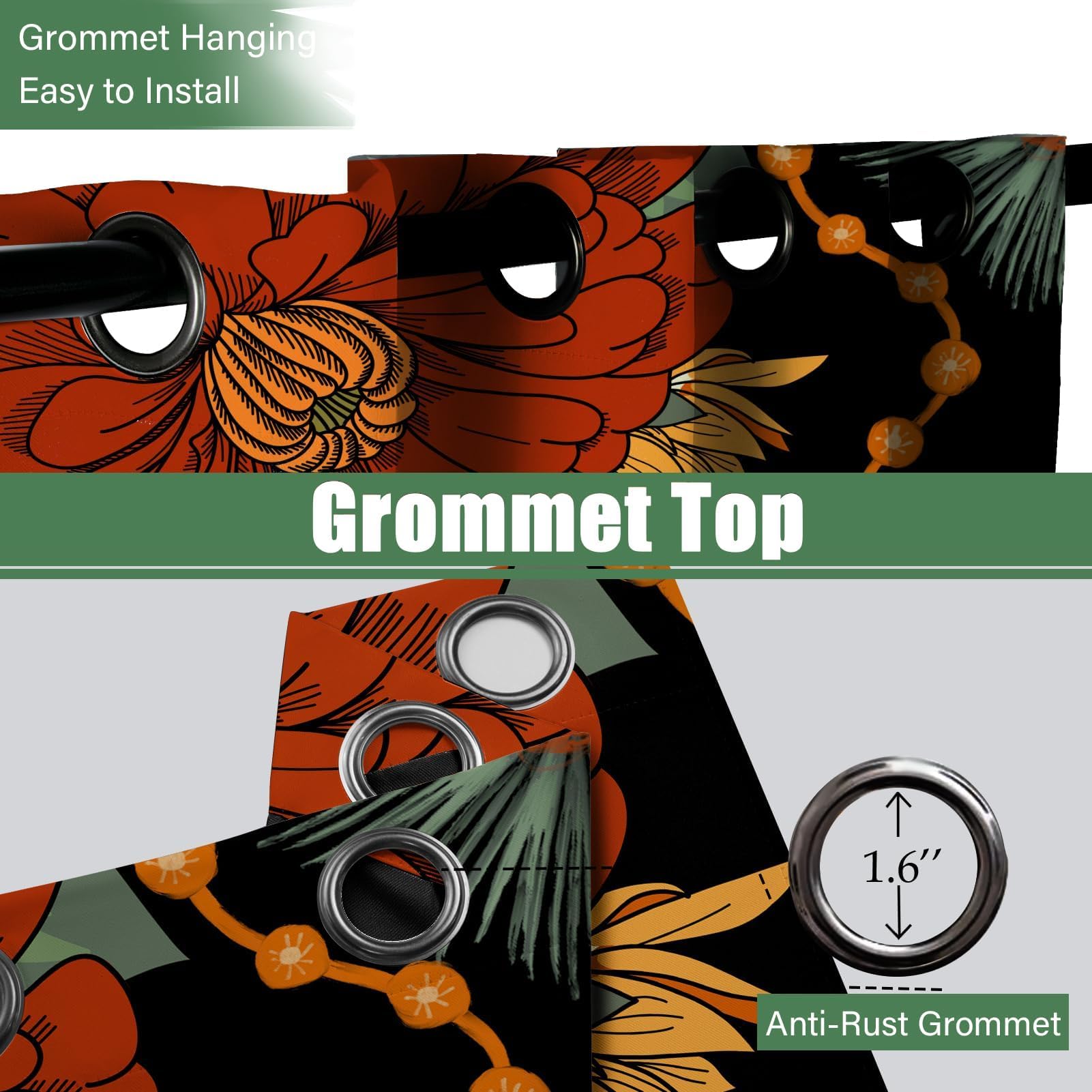 • β˜€οΈοΈπ—™π—¨π—Ÿπ—Ÿ π—•π—Ÿπ—”π—–π—žπ—’π—¨π—§ 𝗖𝗨π—₯π—§π—”π—œπ—‘π—¦: Set includes 2 panels of bohemian flower blackout curtain(52 inch wide by 84 inch long each). Each panel has 8 grommets. The interior diameter of the hole is 1.6 inch. It's easy to hang. Curtains are made of 100% high quality polyester fabric. Bohemian-style blackout curtains featuring a rich and colorful botanical floral design offer an exquisite blend of functionality and decorative charm.